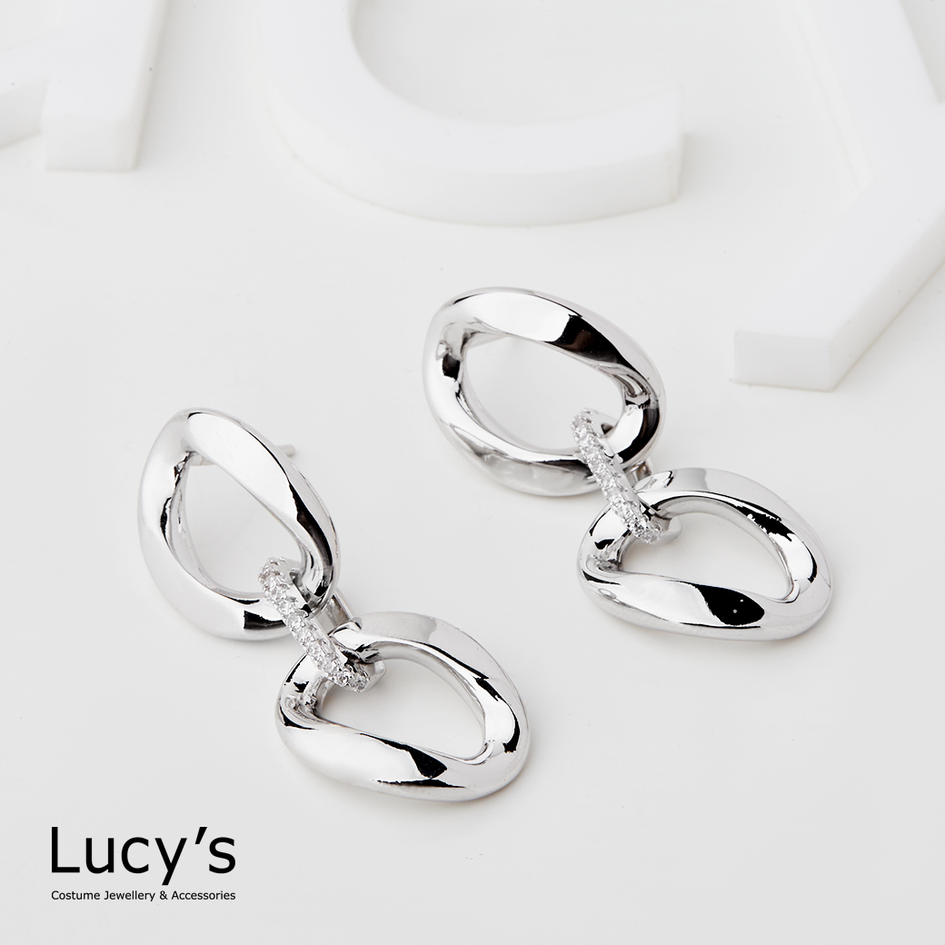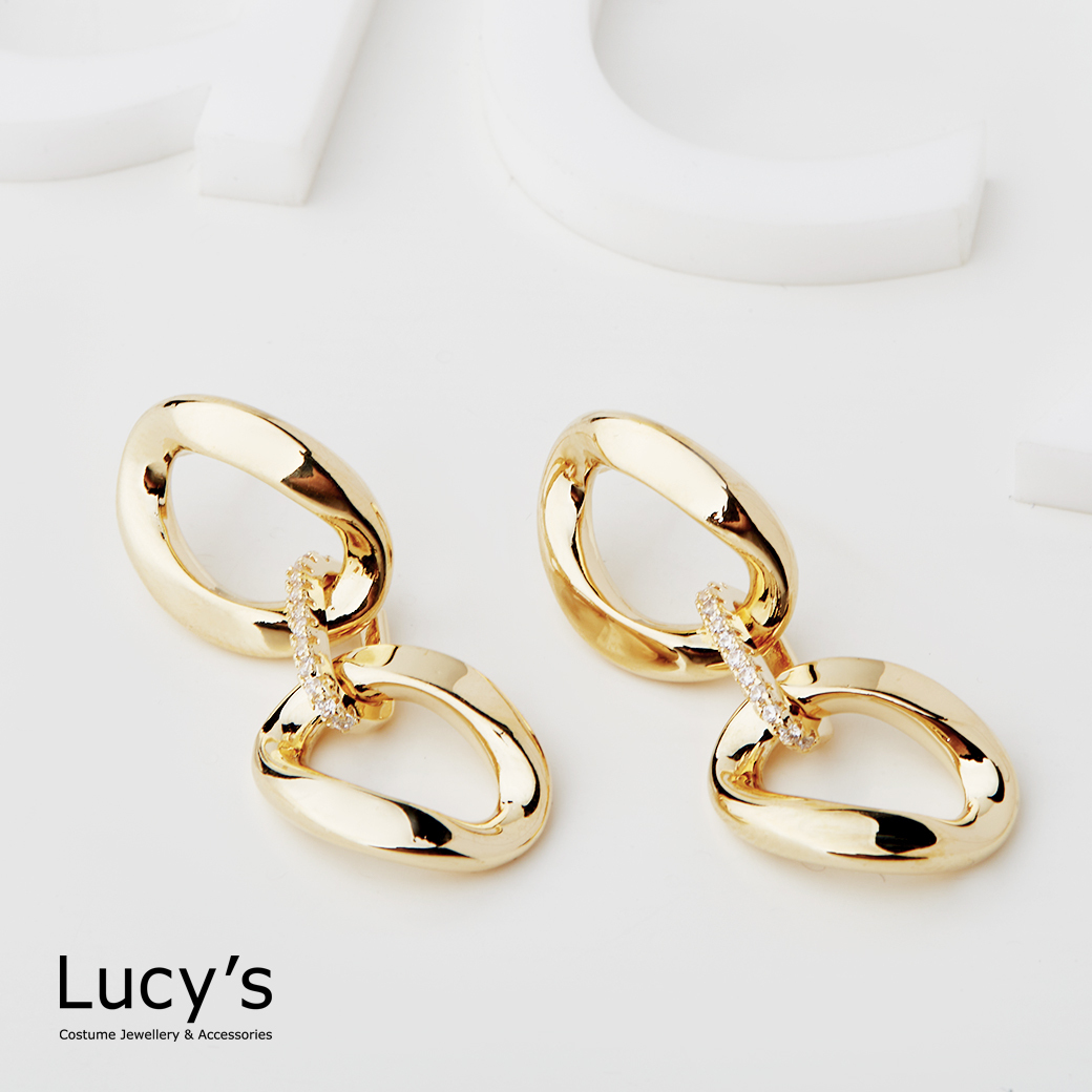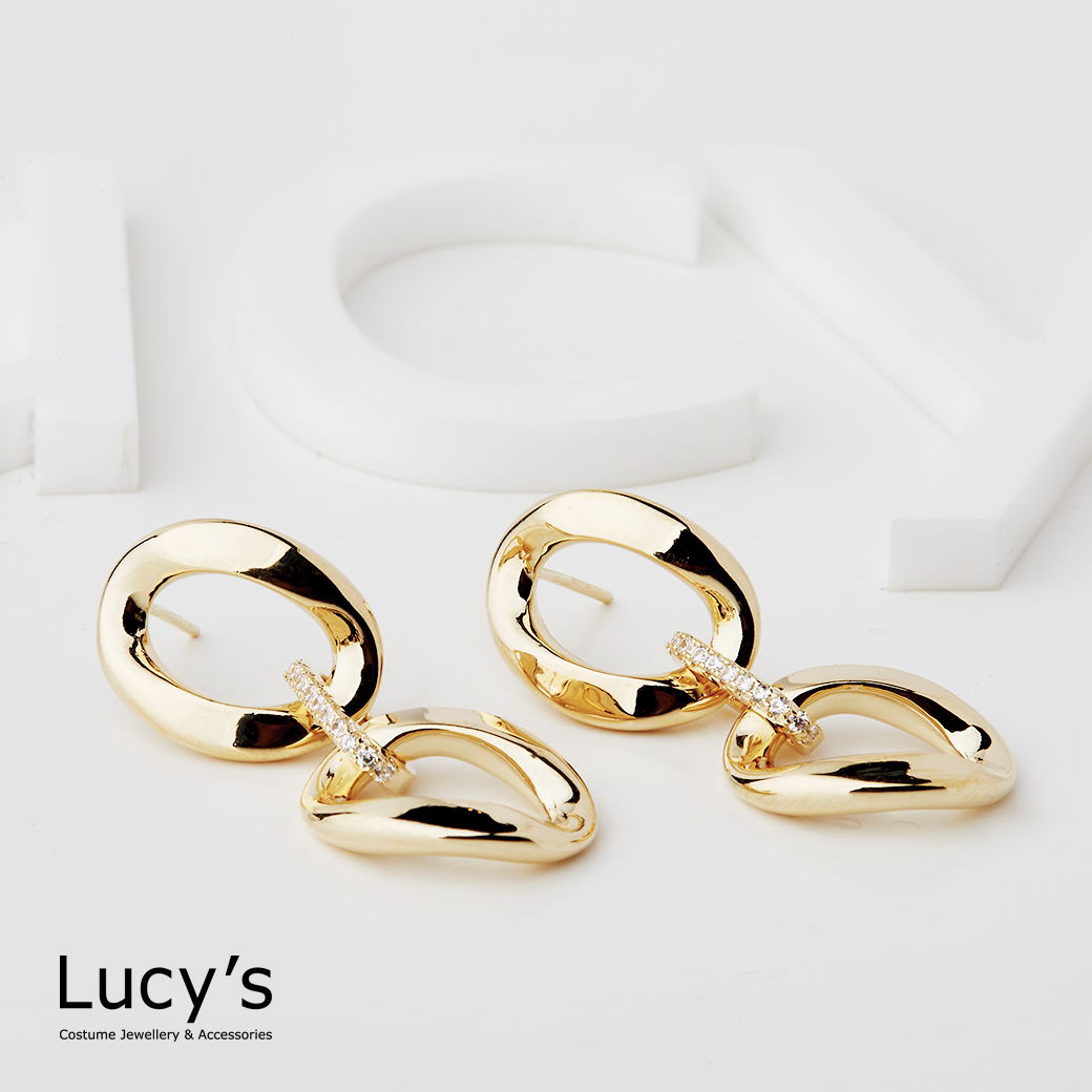細鑽橢圓鍊條 耳環 二色 (116598/116599)