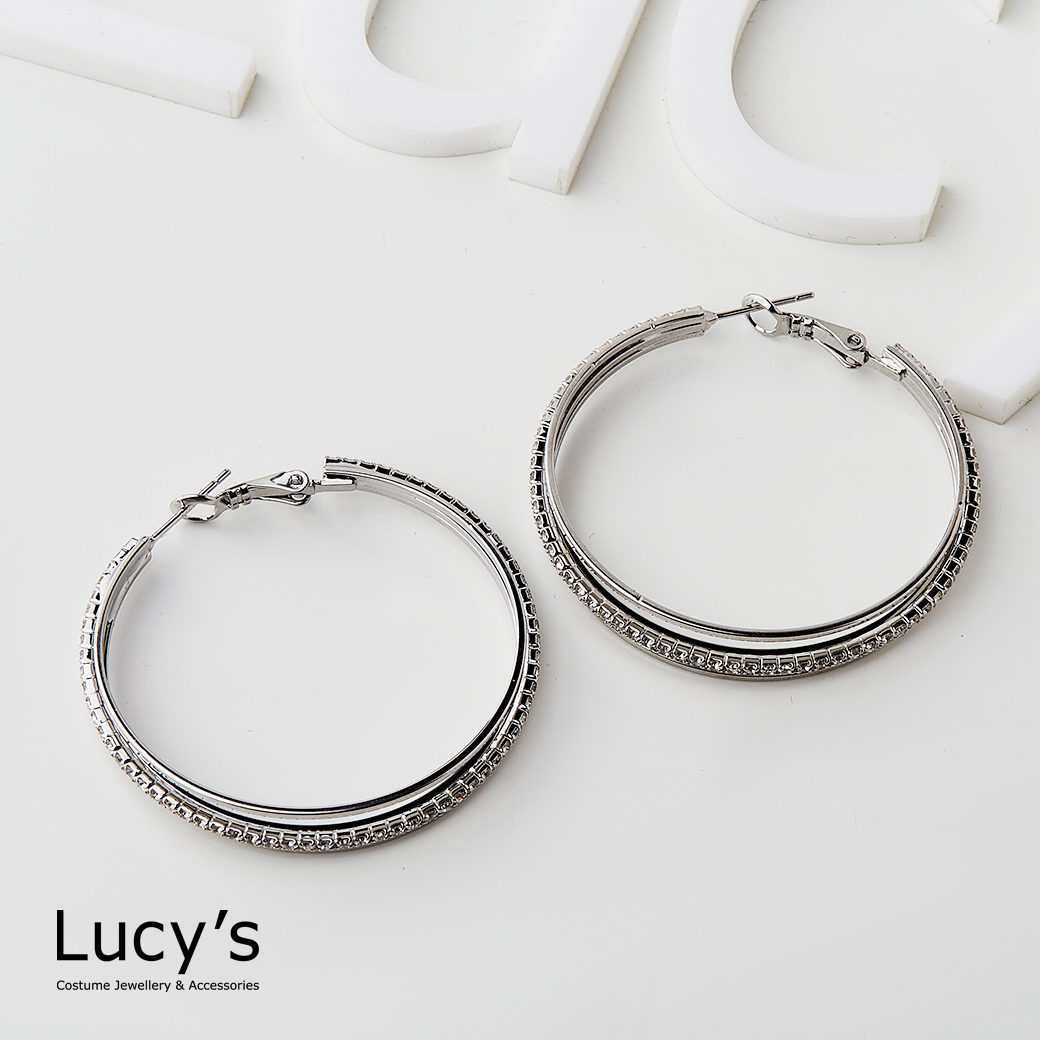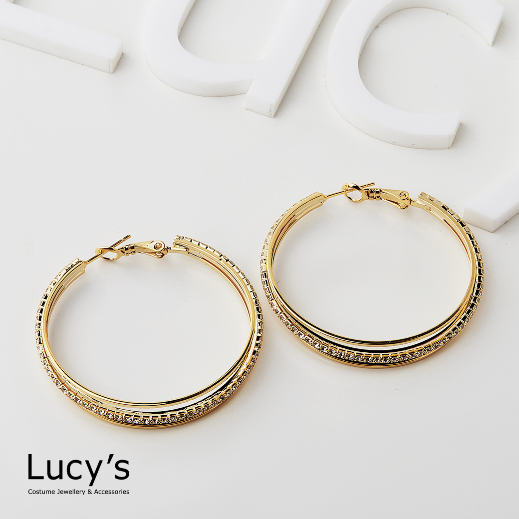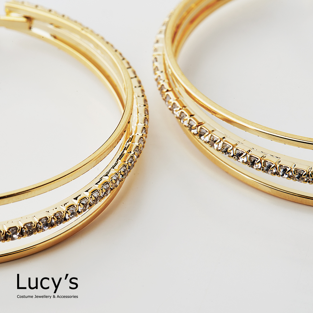 三線微鑽 圈型耳環 (二色) (117614/117615)