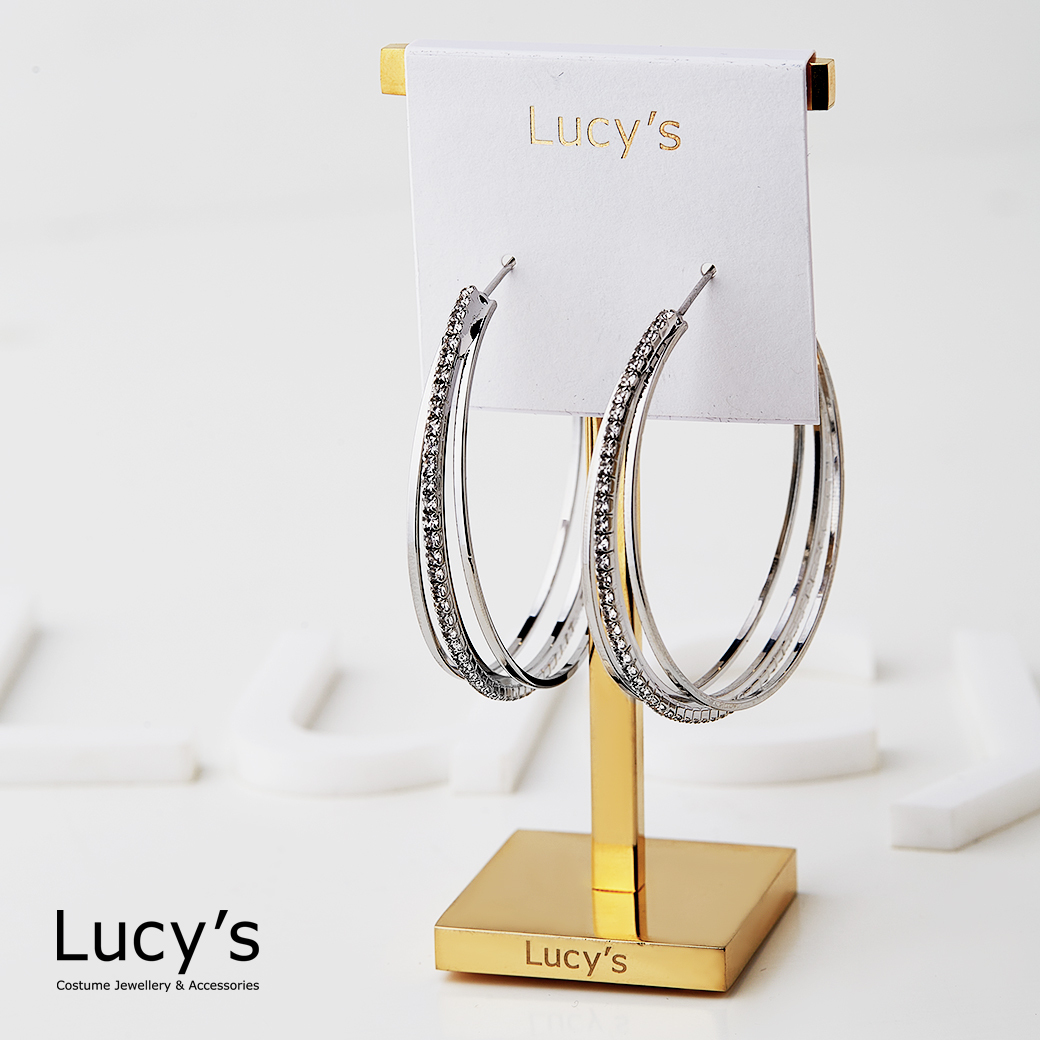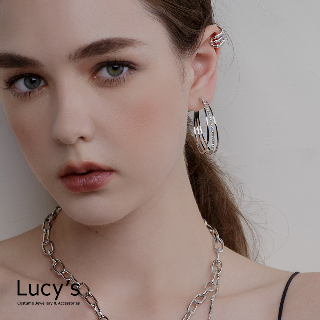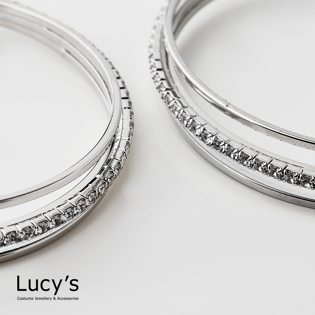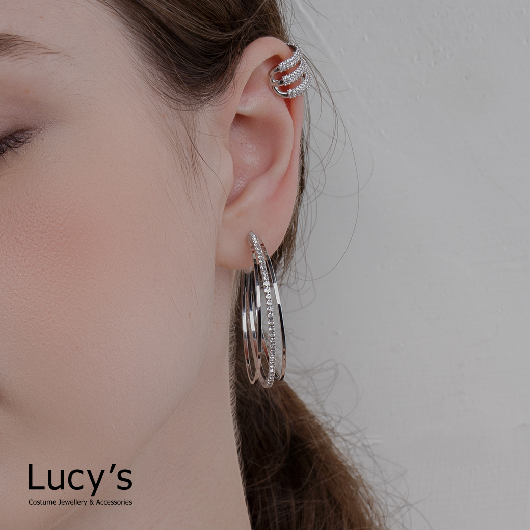 三線微鑽 圈型耳環 (二色) (117614/117615)
