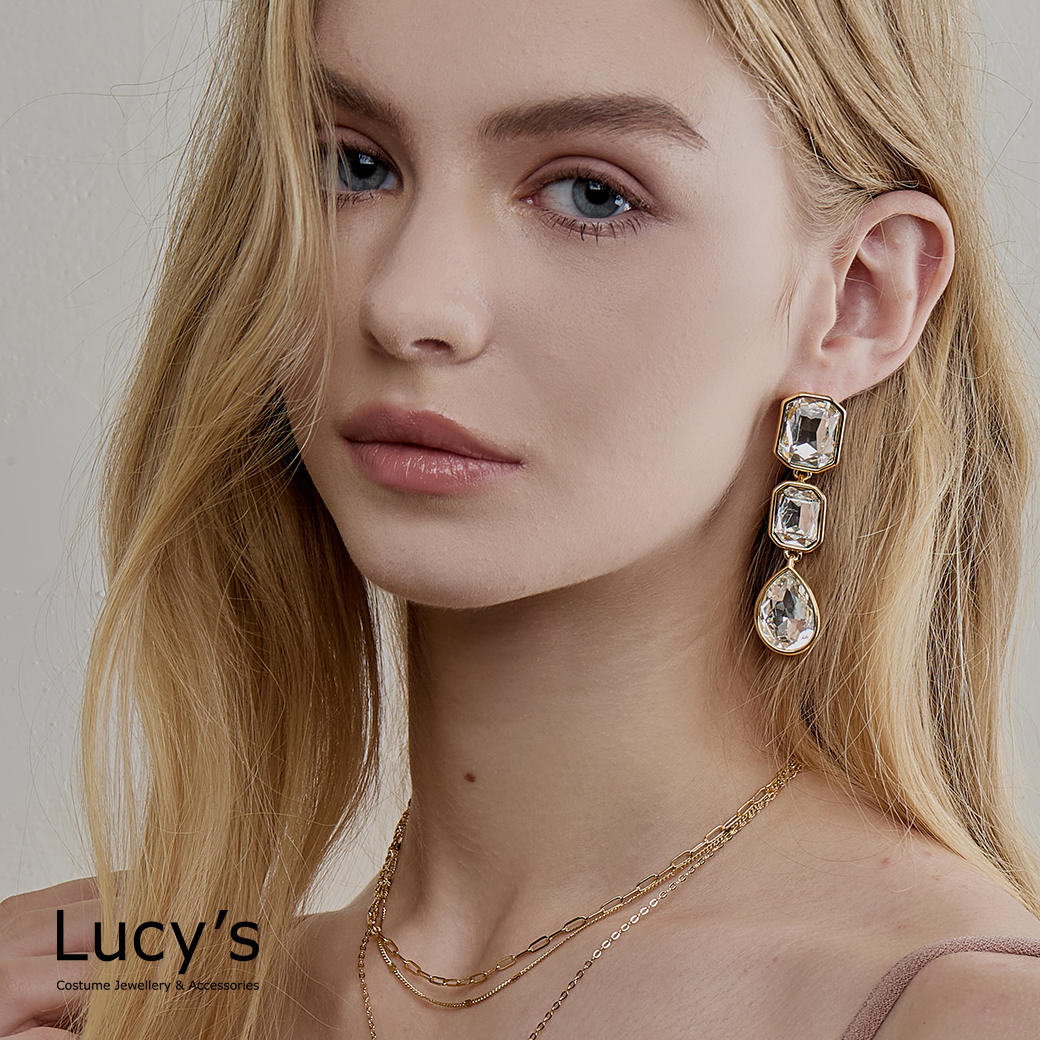 幾何水晶 耳環 (二色) (118411/118412)