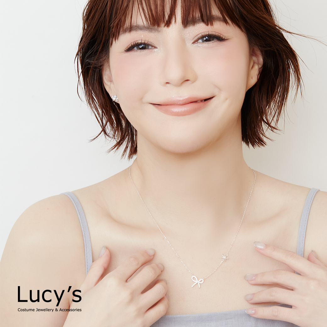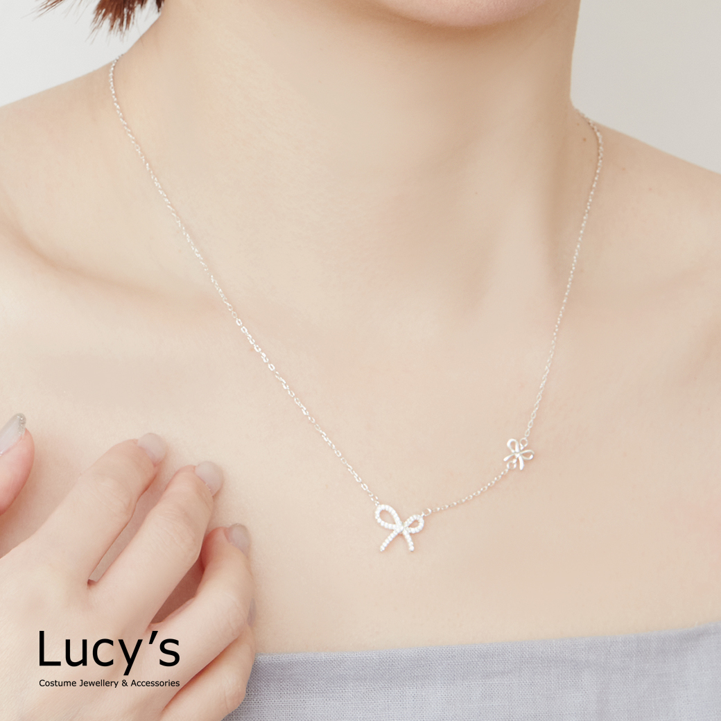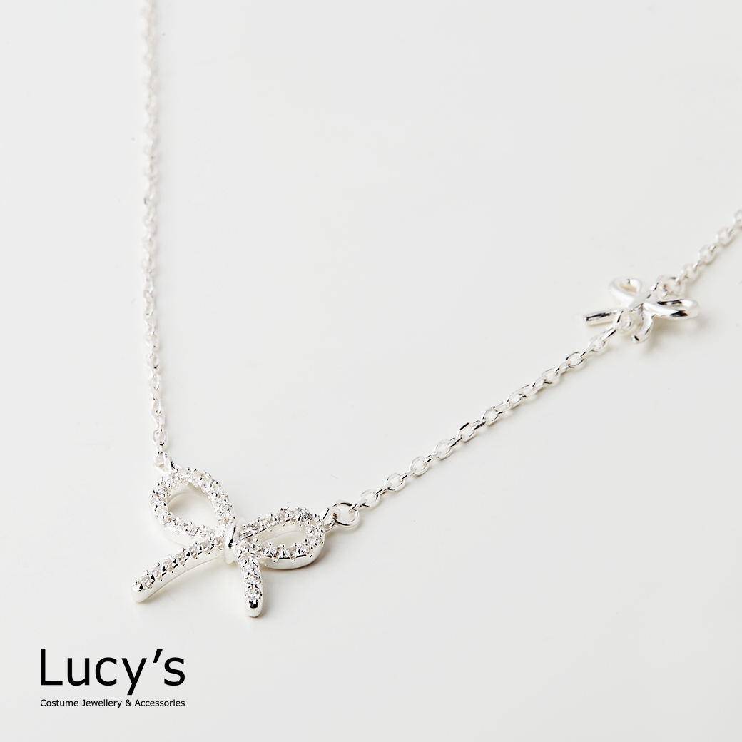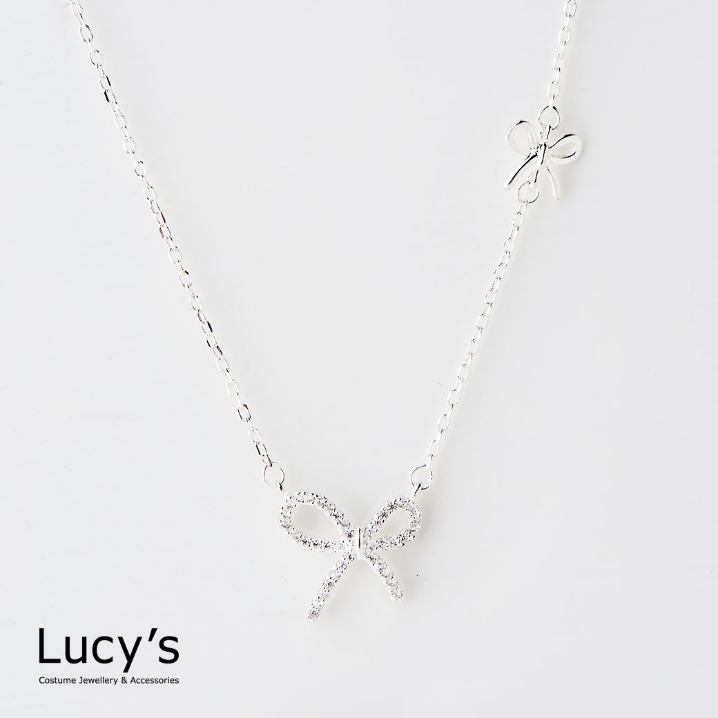 925純銀 雙映蝴蝶結 項鍊 (118965)