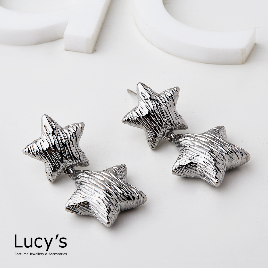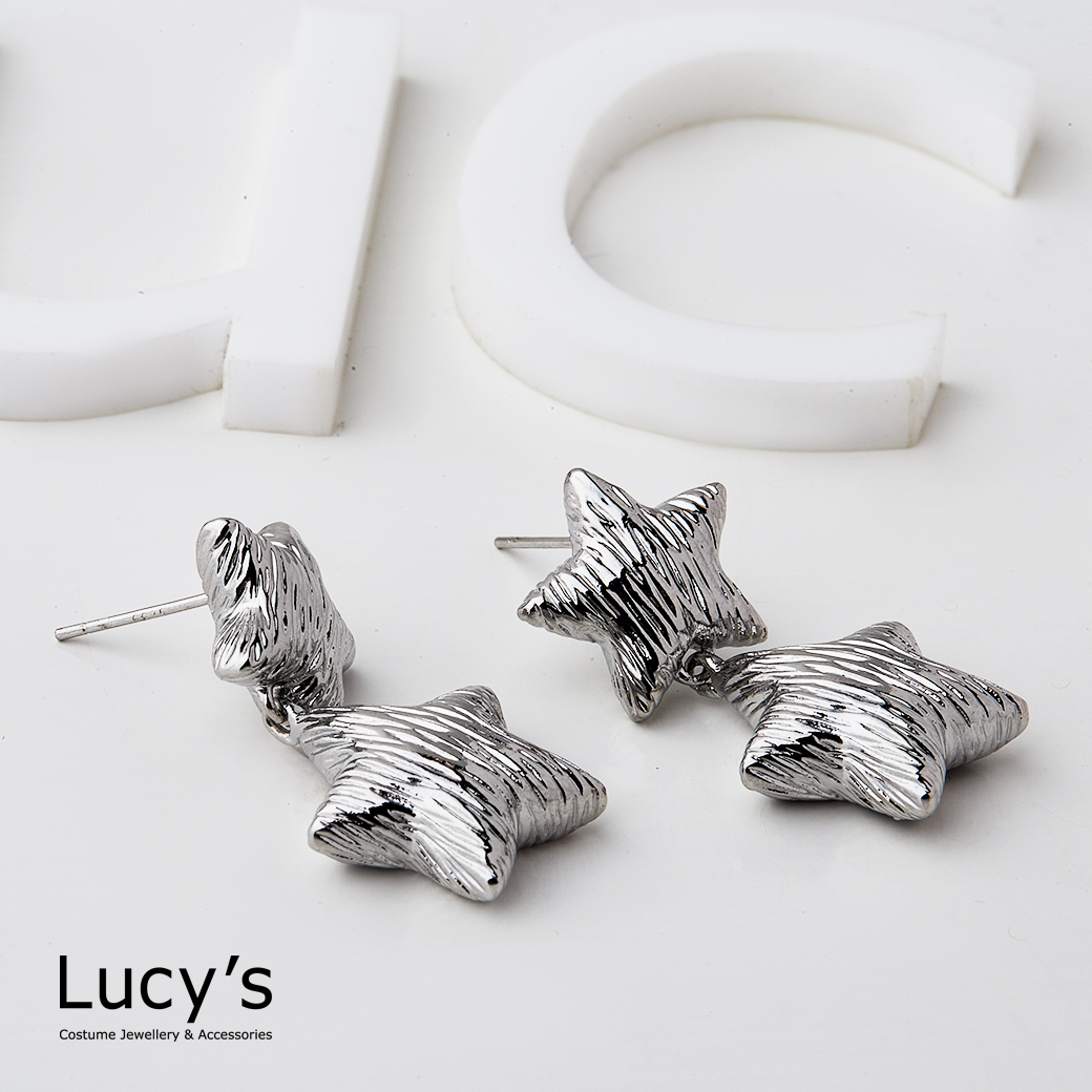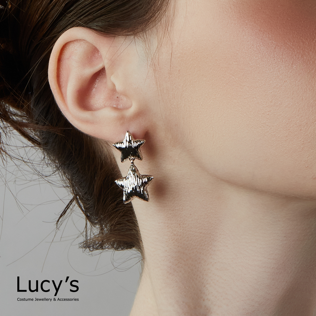 髮絲紋雙星 耳環 (二色) (119362/119363)