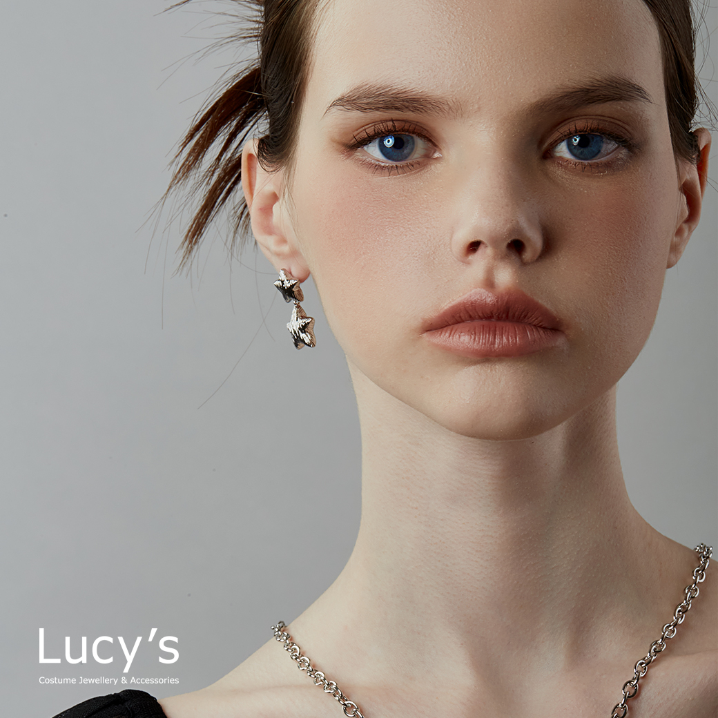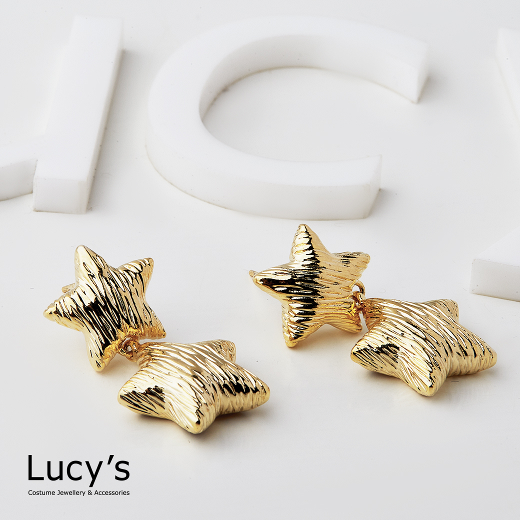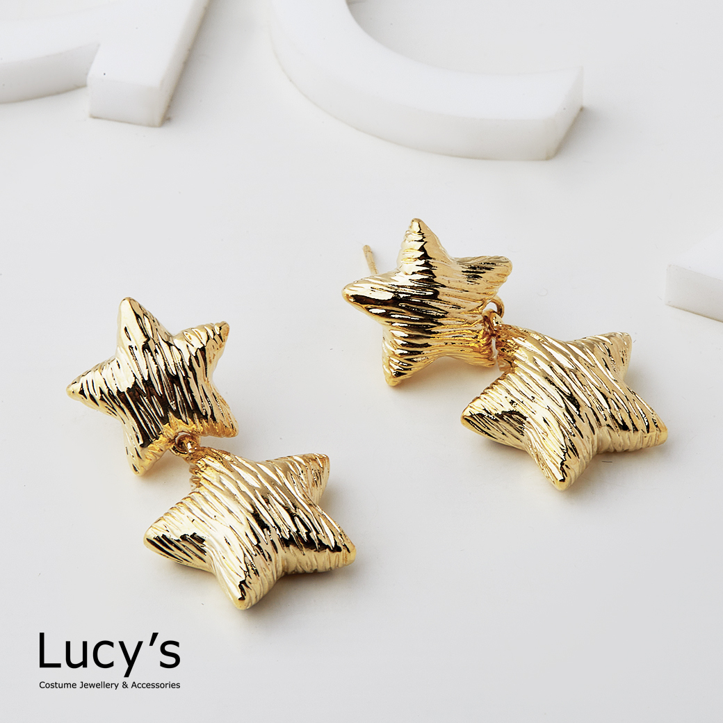 髮絲紋雙星 耳環 (二色) (119362/119363)