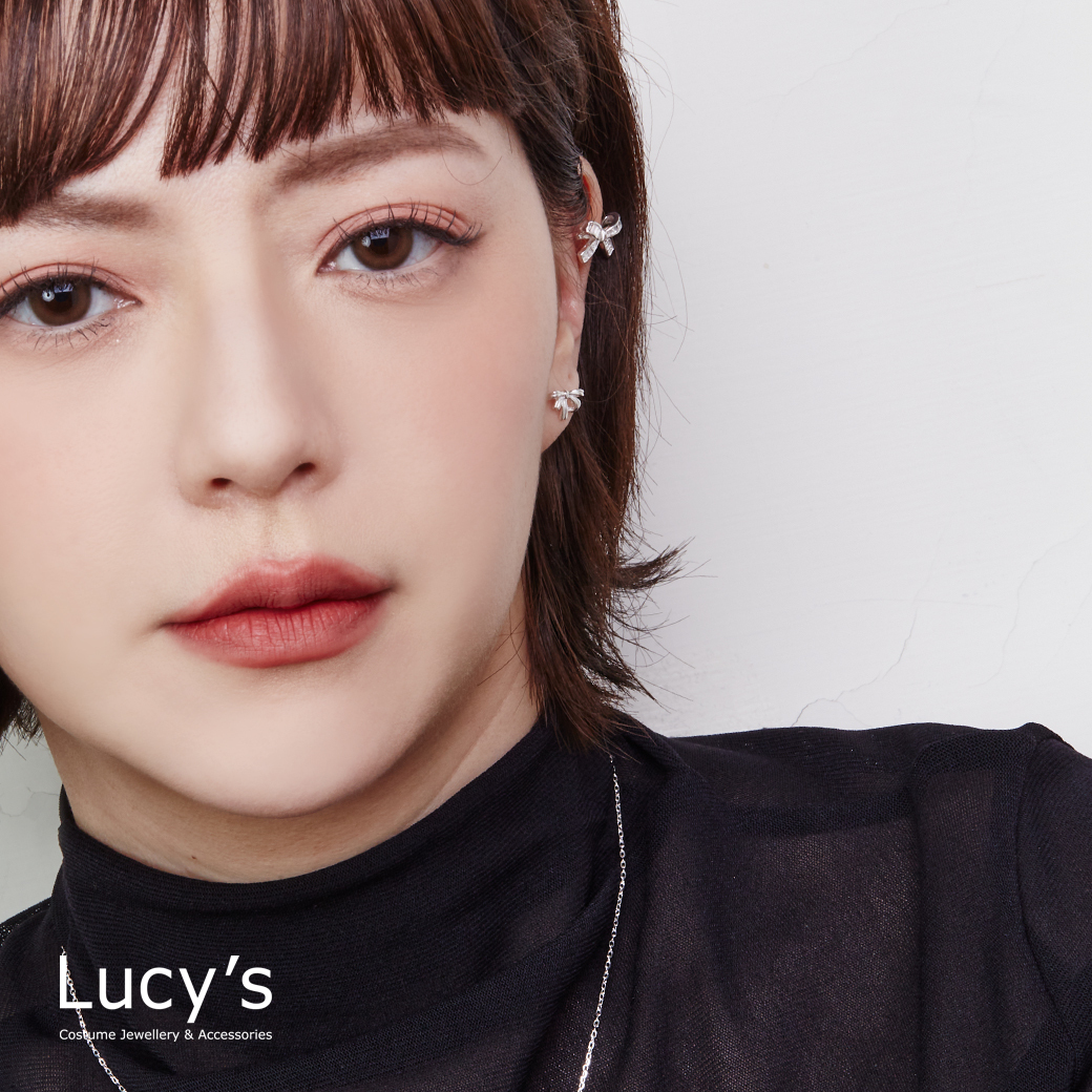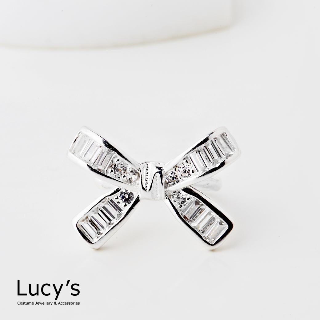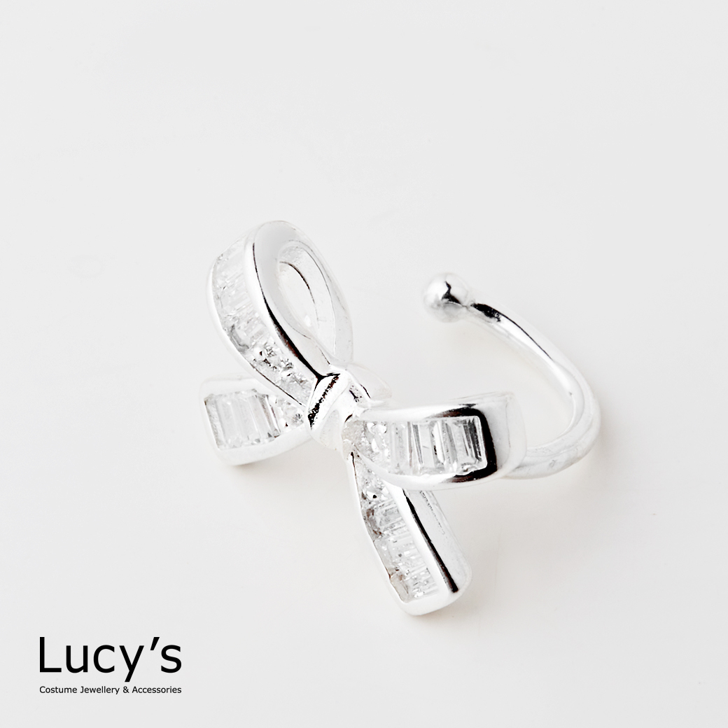 925純銀 蝴蝶結鋯石 耳骨夾 (120439)