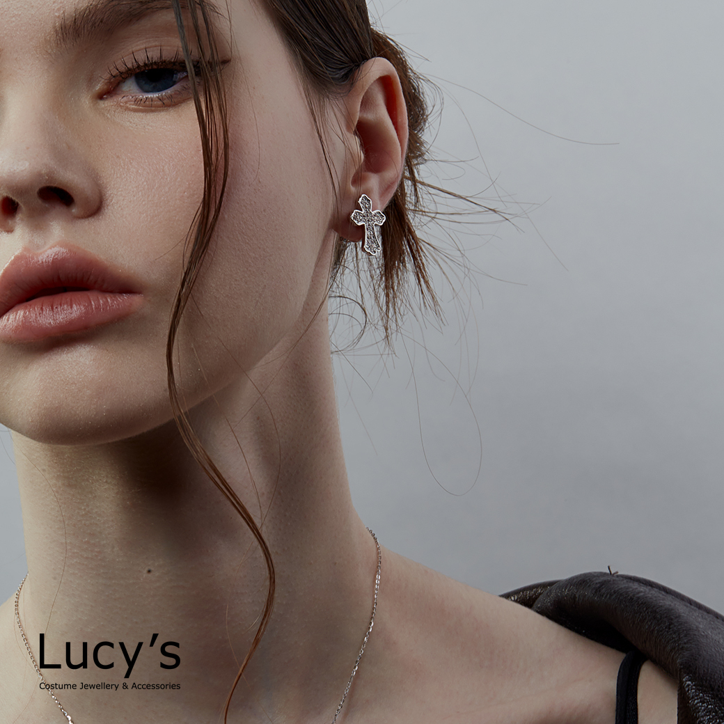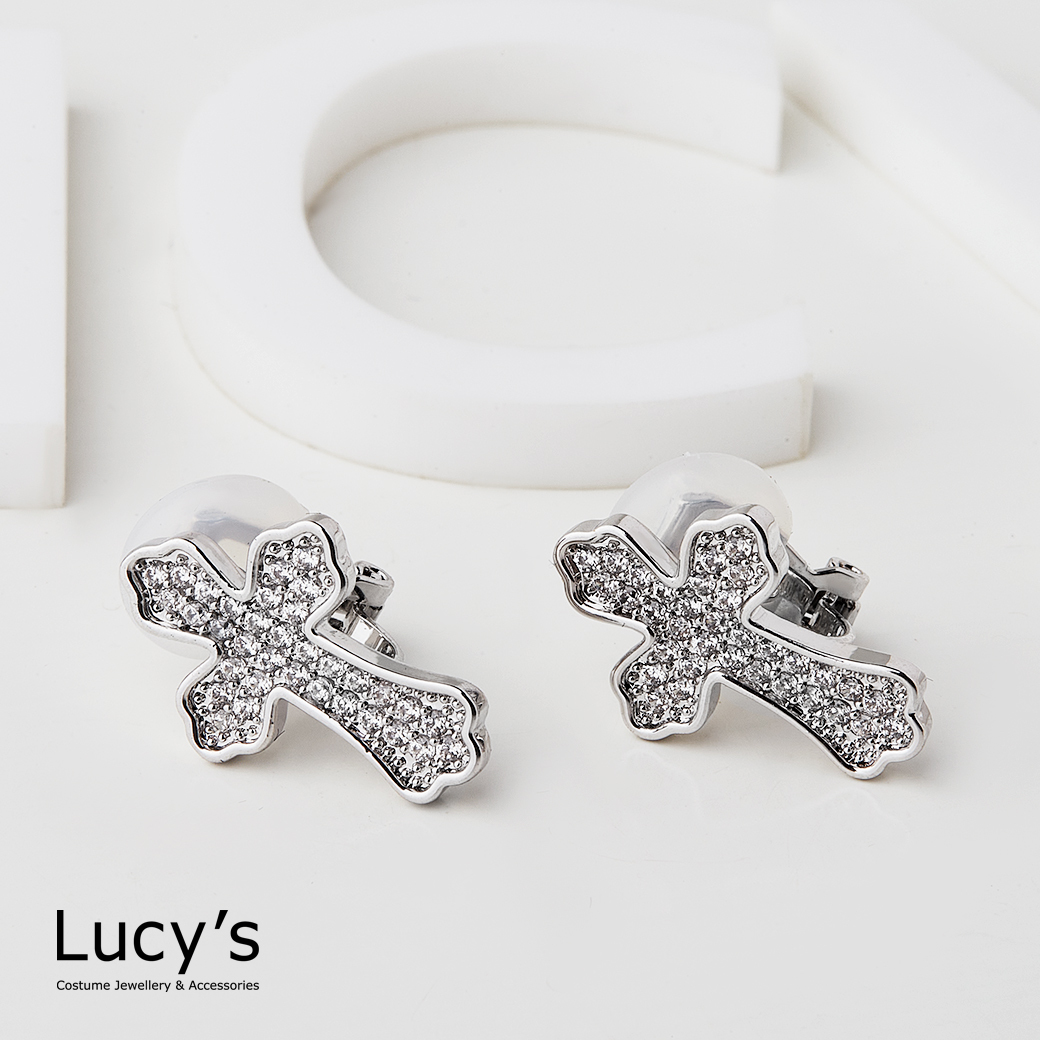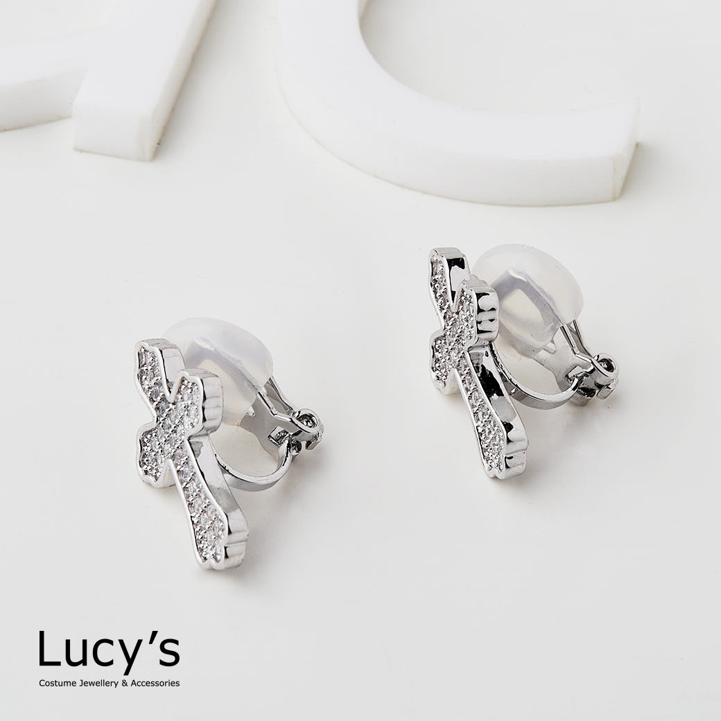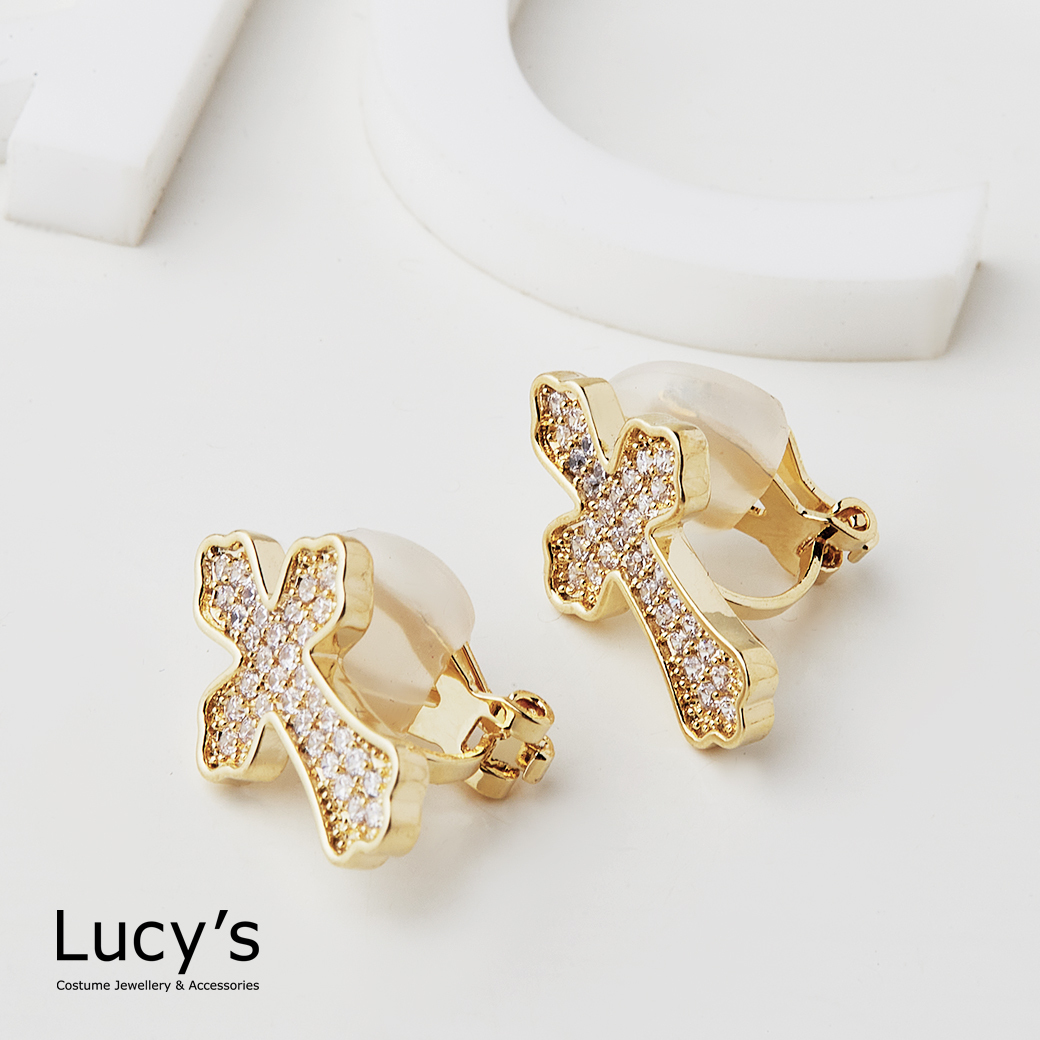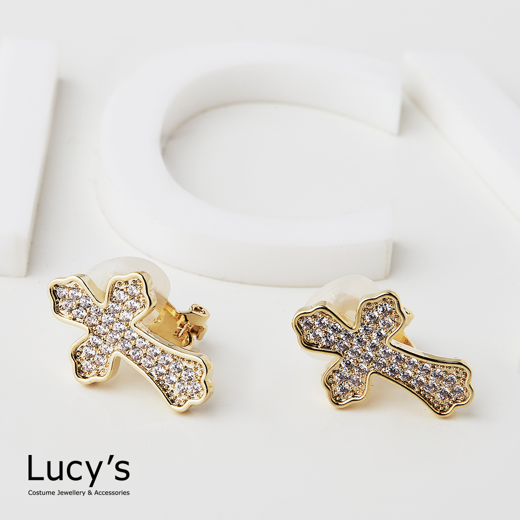 閃耀十字架 夾式耳環 (二色) (120555/120556)