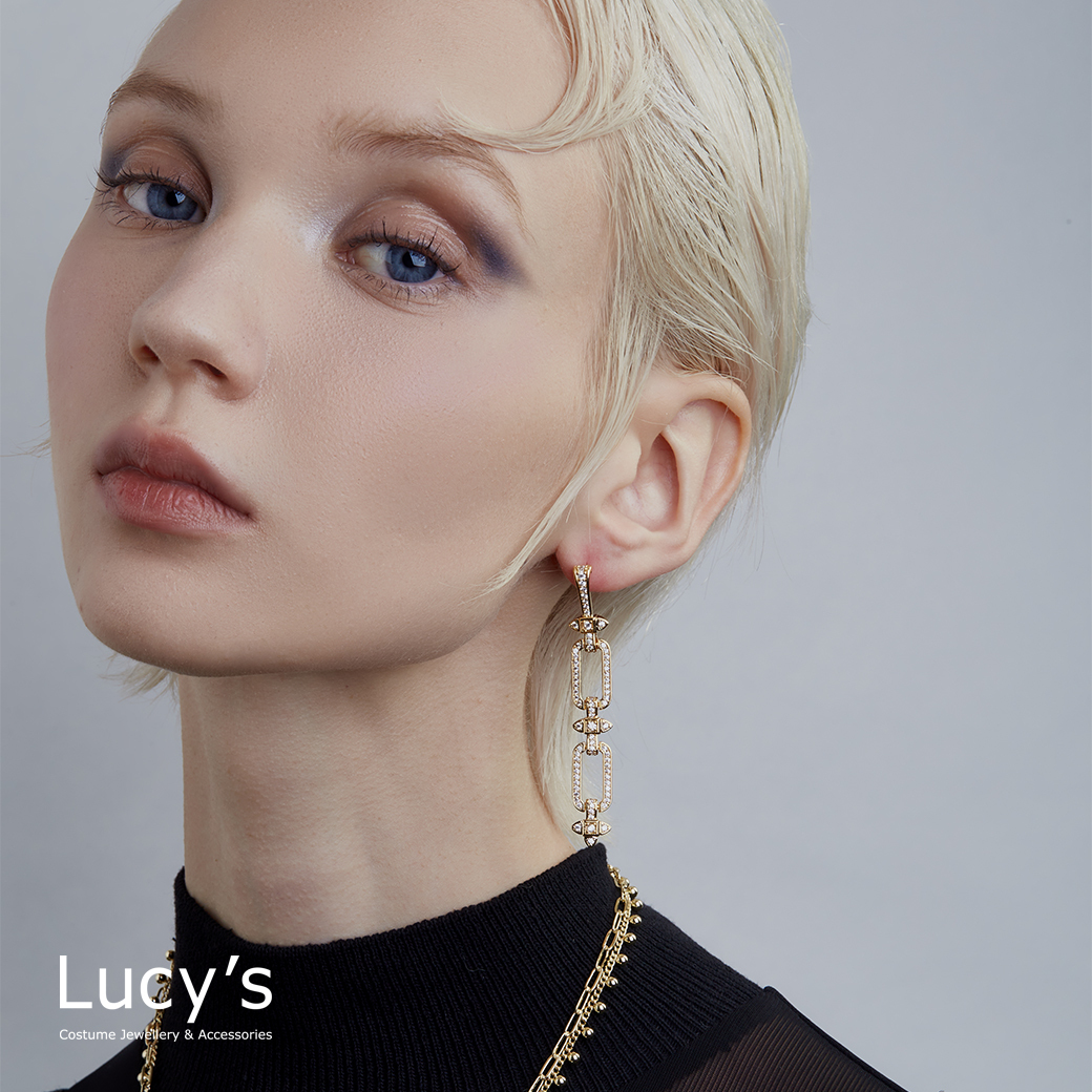 鑲鑽鍊 耳環 (二色) (120789/120790)