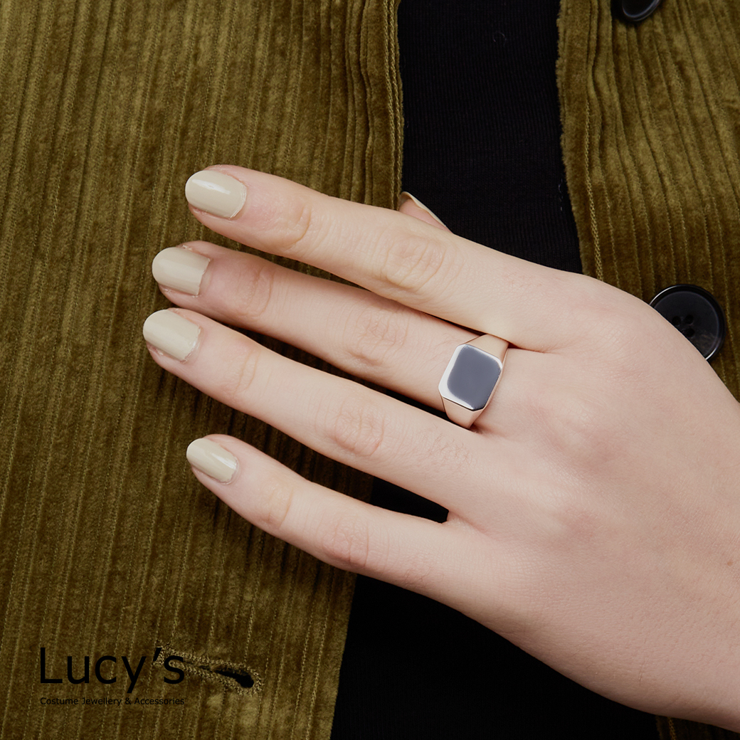 925純銀 亮面方形 戒指 (二色) (121904/121905)