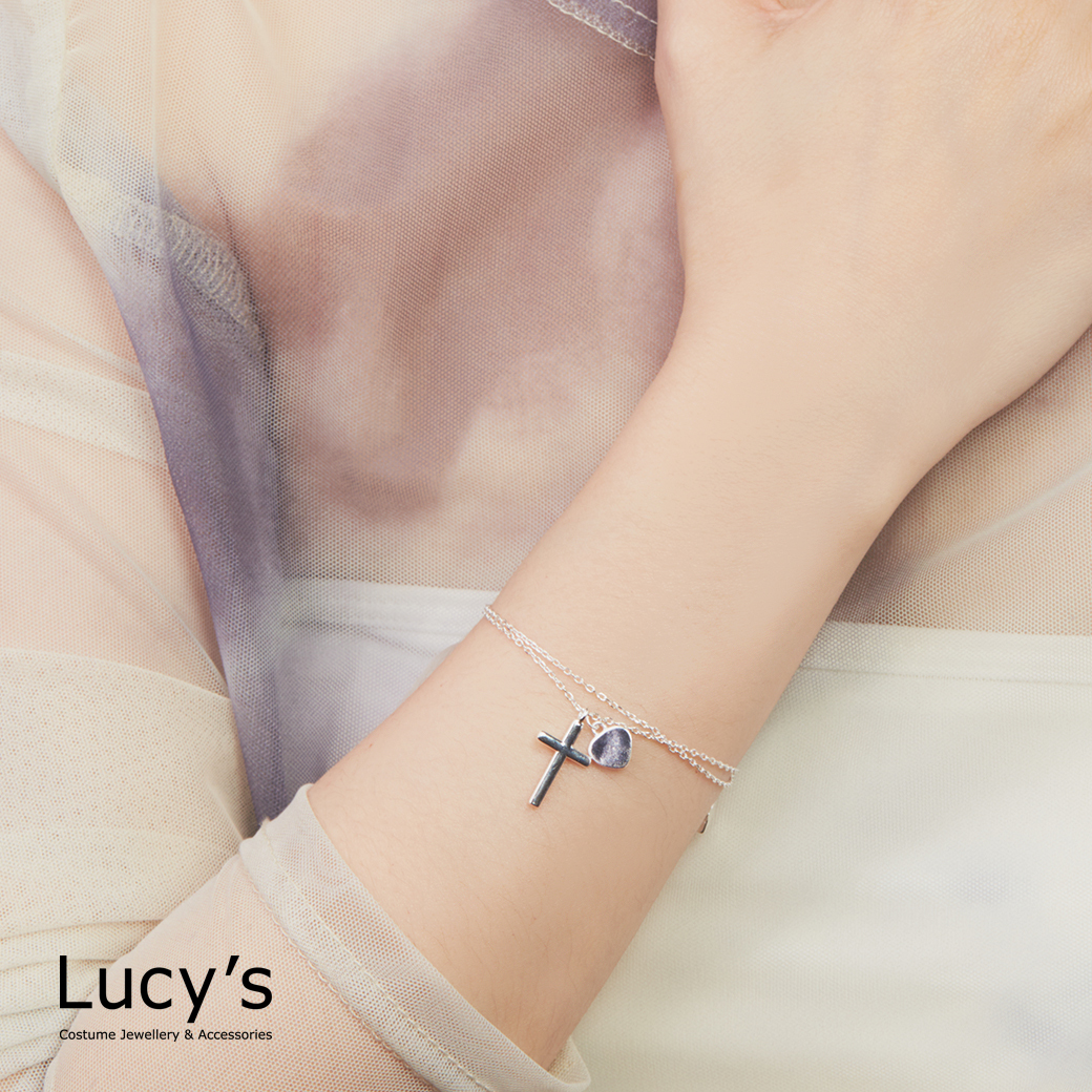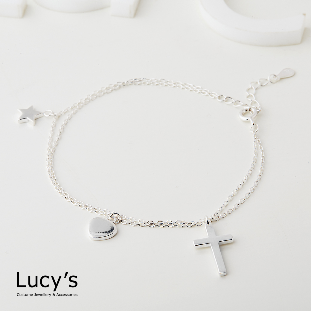 925純銀 幾何十字架 雙層手鍊 (123341)