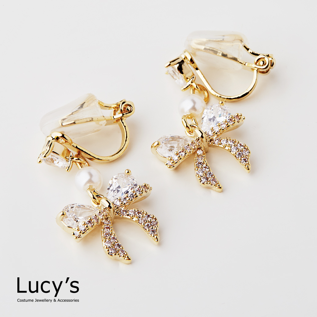 珍愛蝴蝶結 夾式耳環 (三色) (123406/123407/123408)