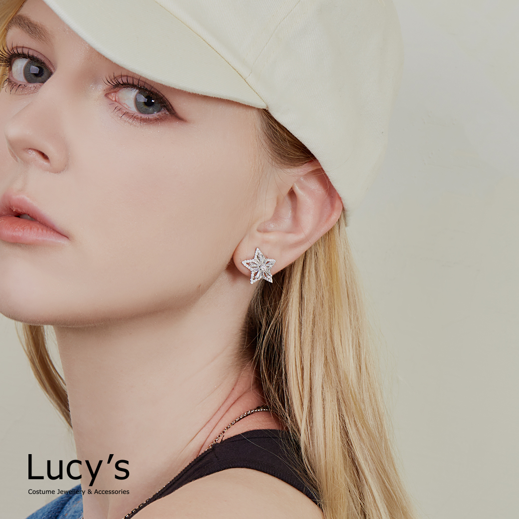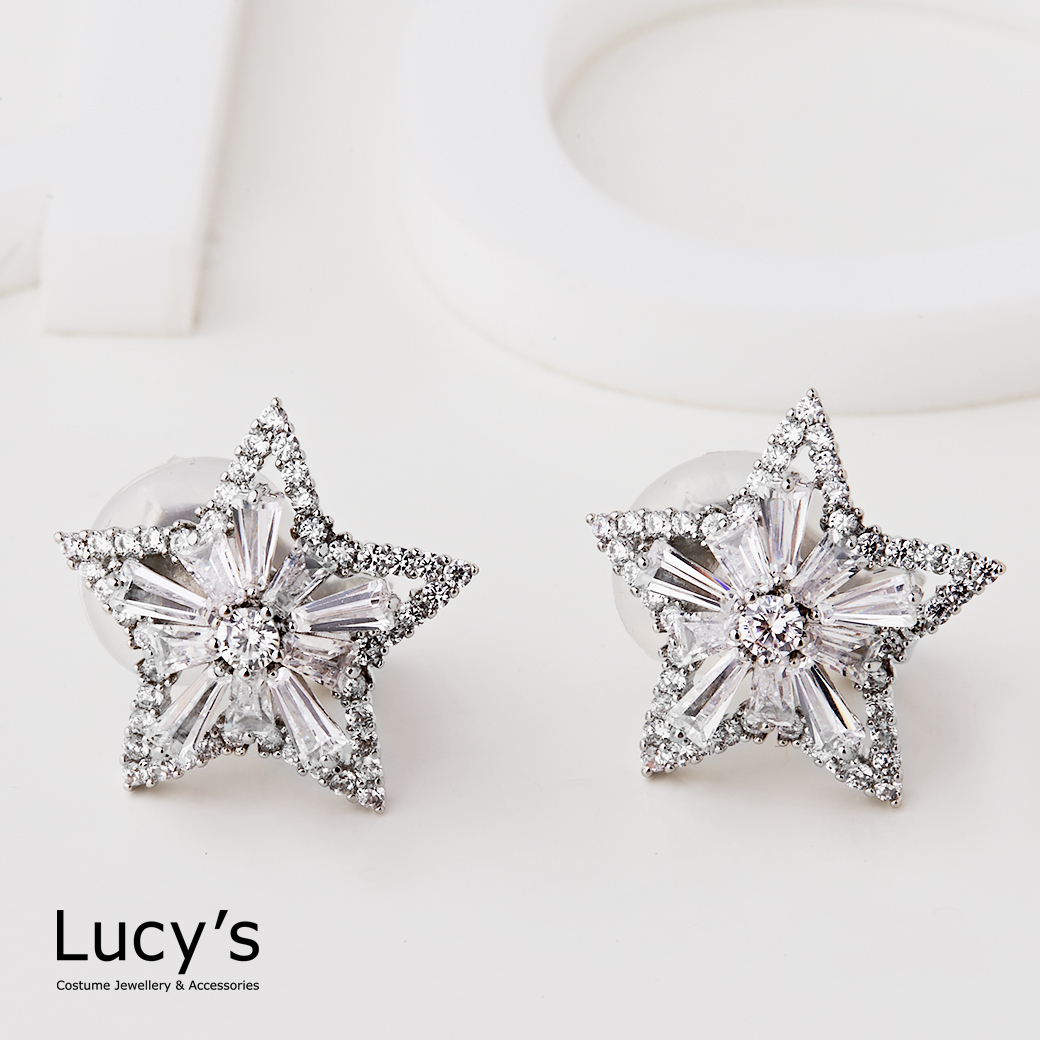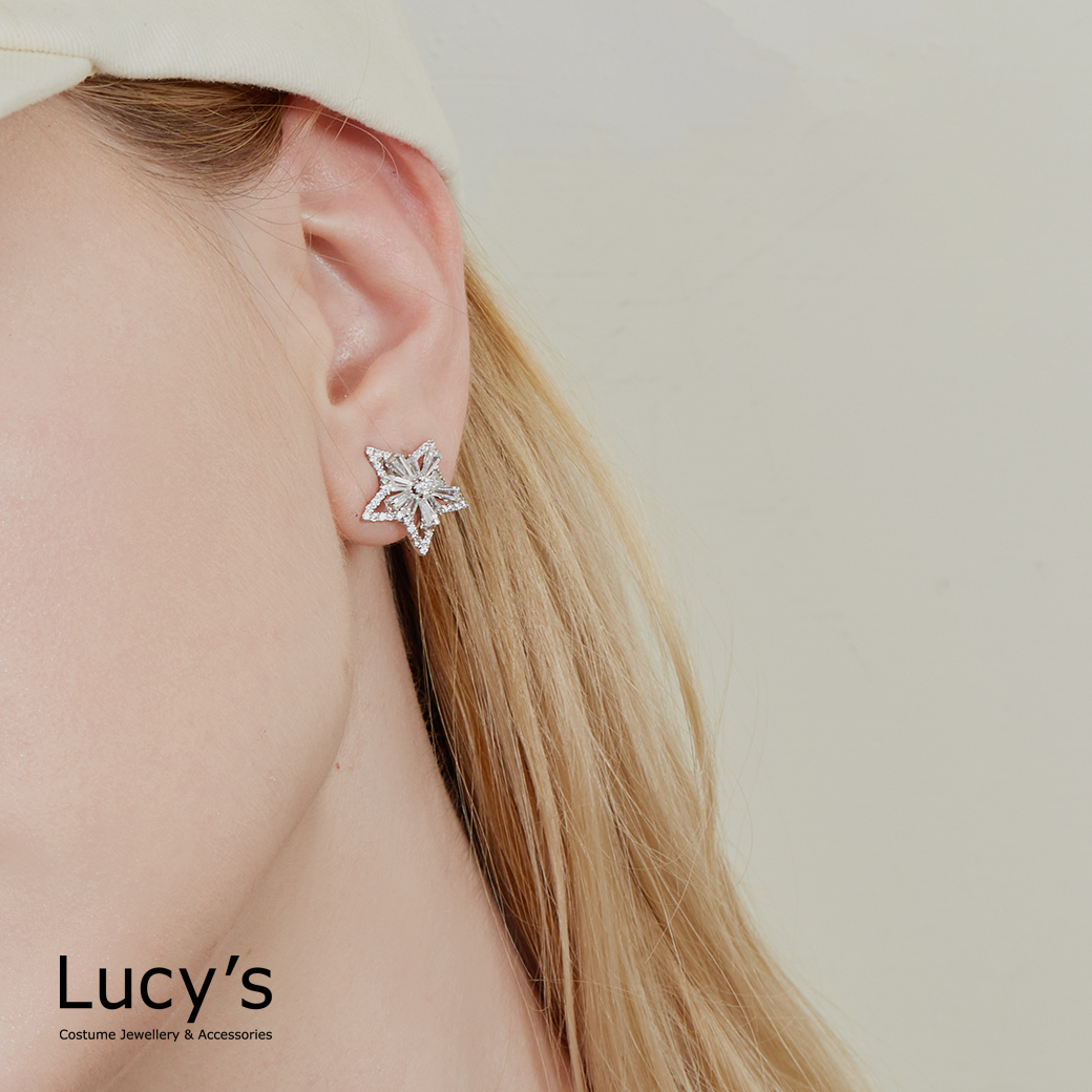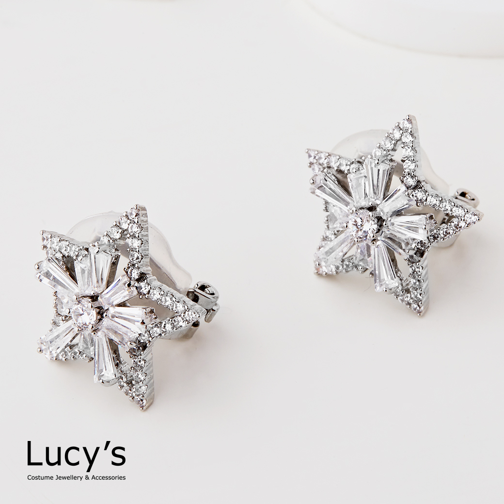 晶鑽五角星 夾式耳環 (123690)