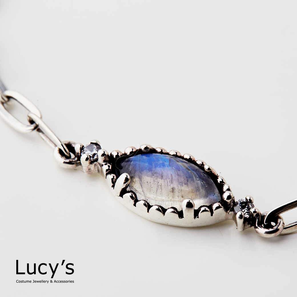 ☛ 此款採用天然月光石/拉長石/髮晶製成,因此每款拿到的花色會不太一樣喔!
