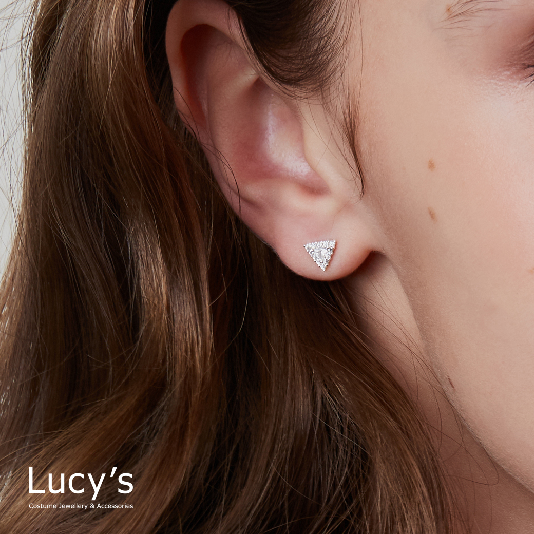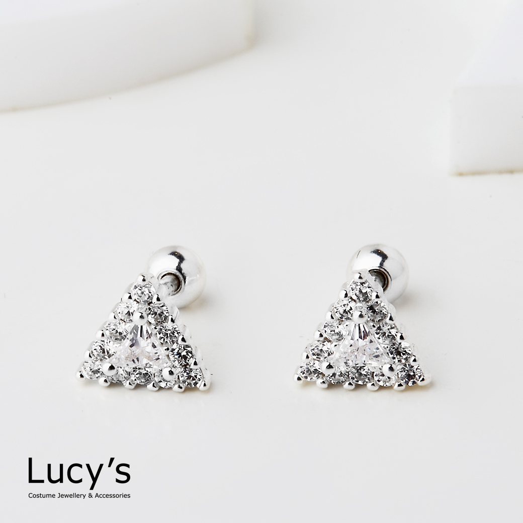 925純銀 閃耀三角 轉珠耳環 (123906)