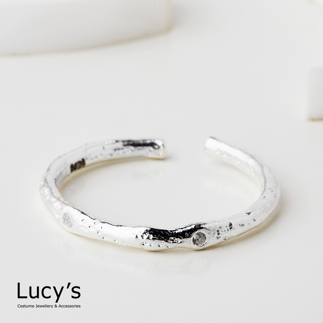 925純銀 皺褶光點 開口戒 (123938)