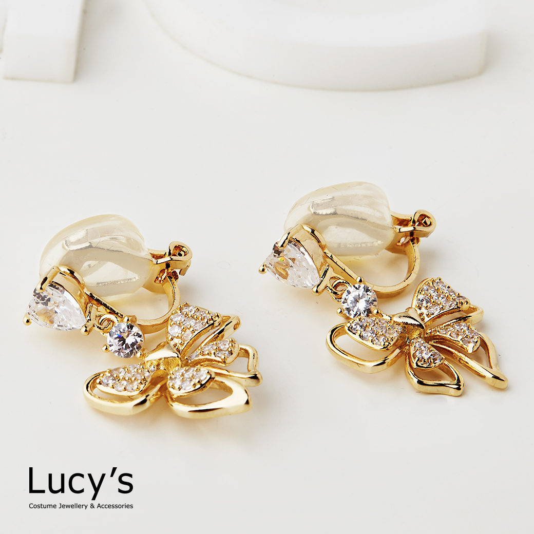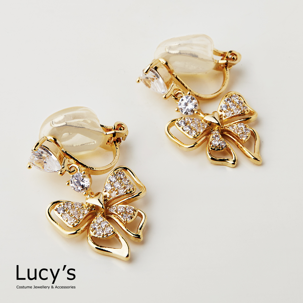 愛戀蝴蝶結 夾式耳環 (三色) (124100/124101/124102)