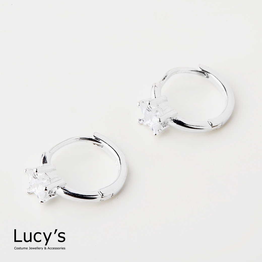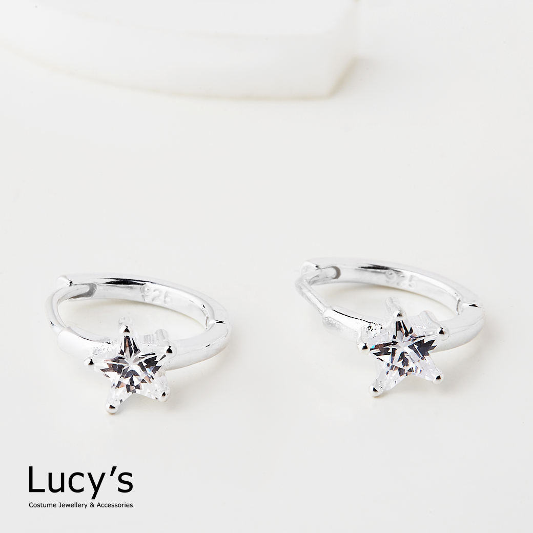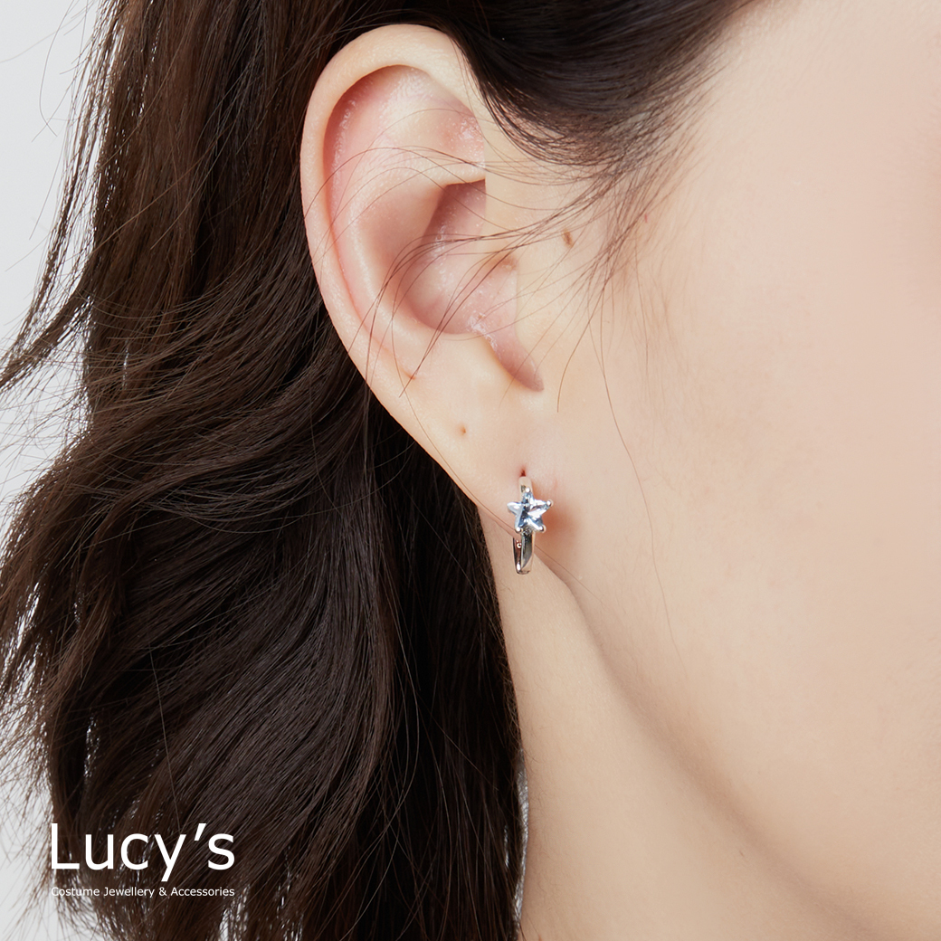 925純銀 清透星星 易扣耳環 (三色) (124597/124598/124599)