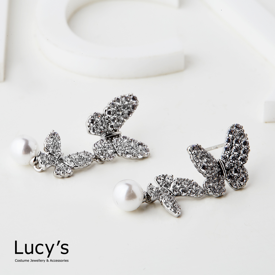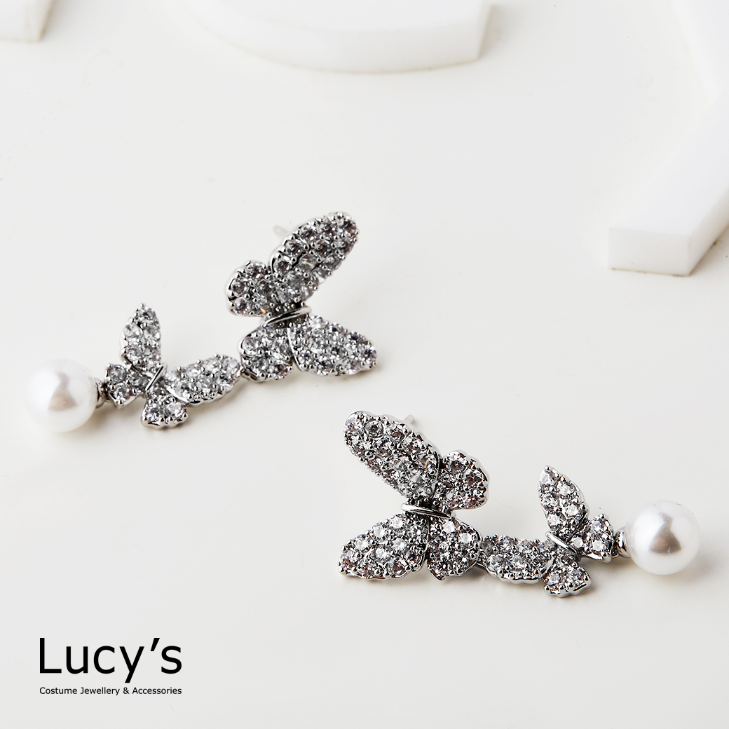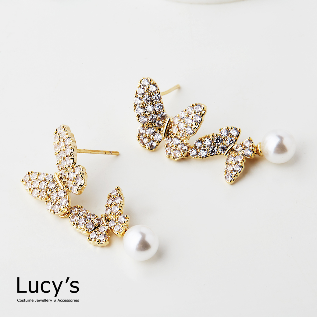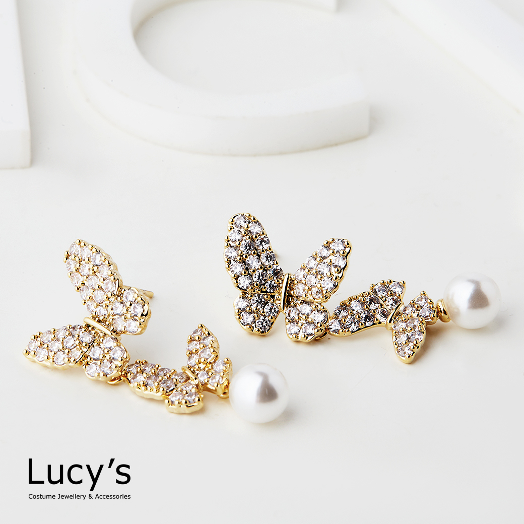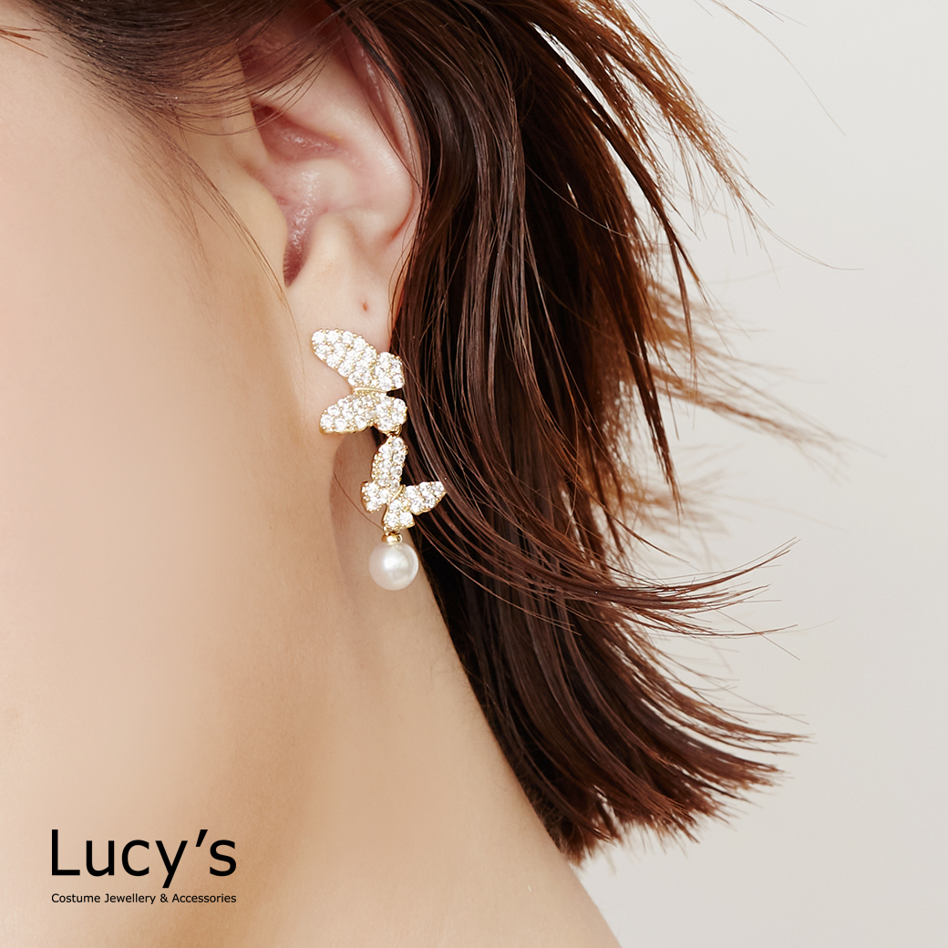 蝶戀珍珠 耳環 (二色) (124931/124932)