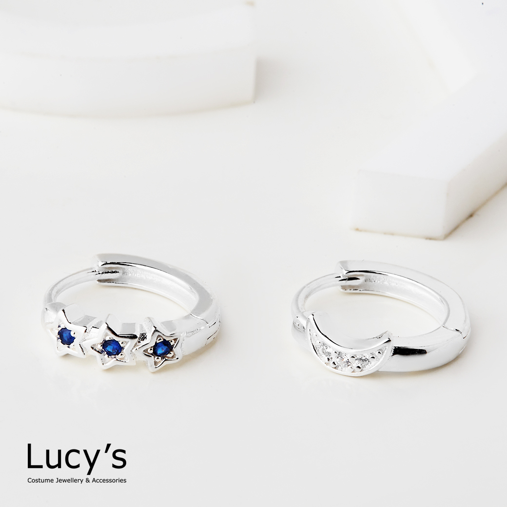 925純銀 星月 易扣耳環 (125310)