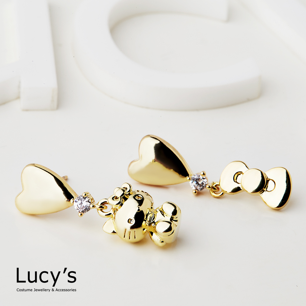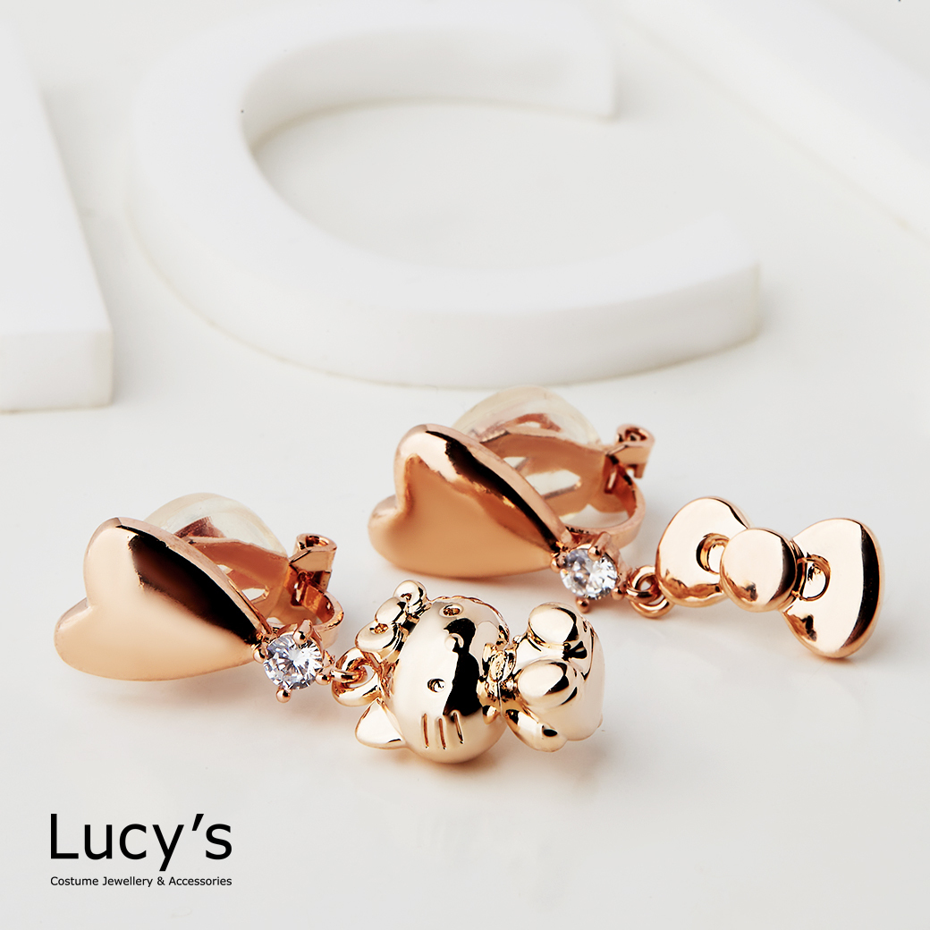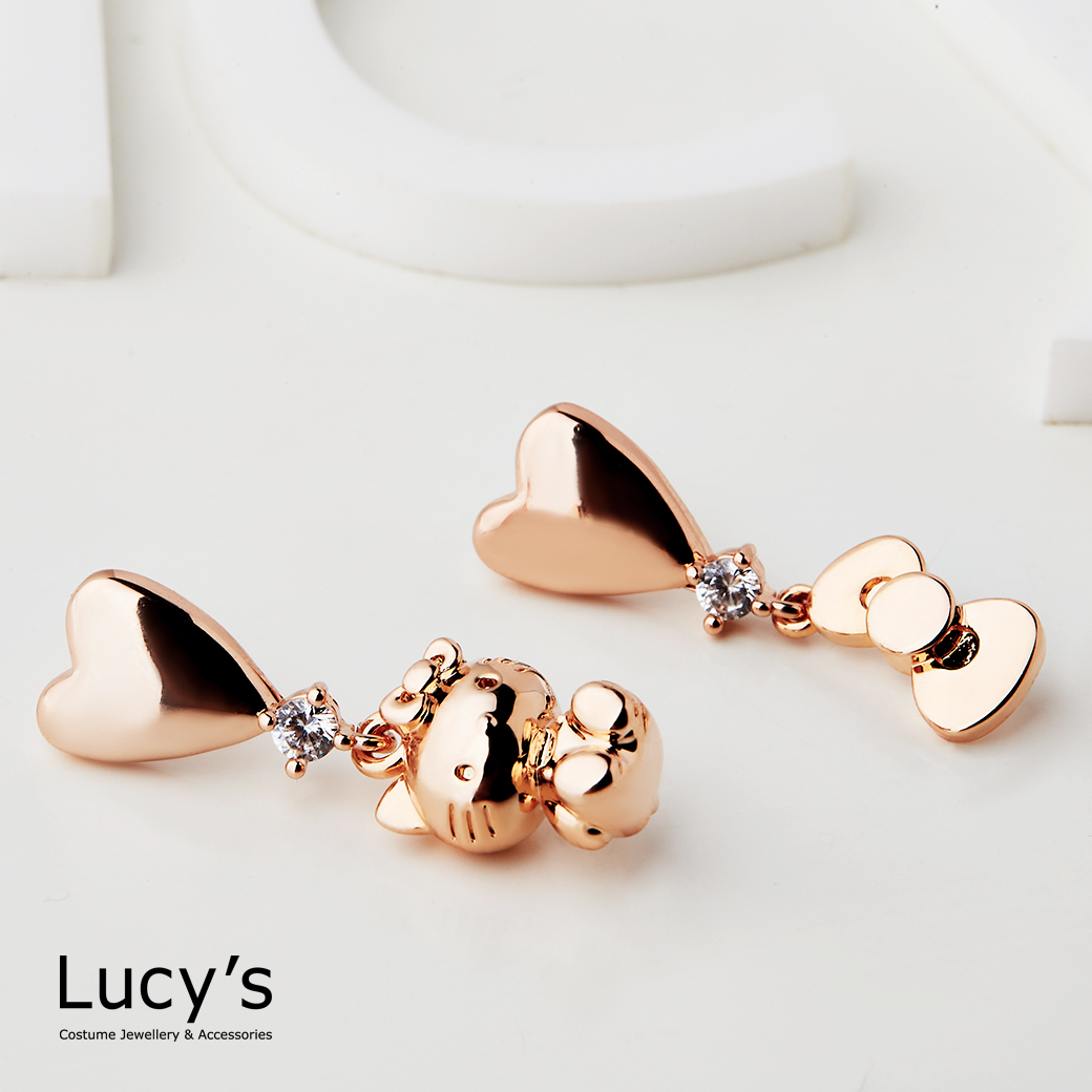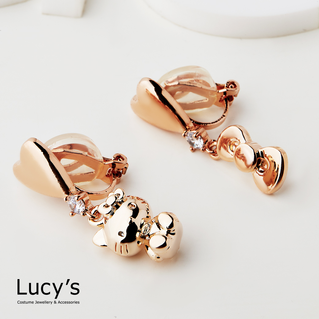 Lucy's X Hello Kitty 限量聯名 Cutie 愛心針式/夾式耳環 (三色) (125404-125409)