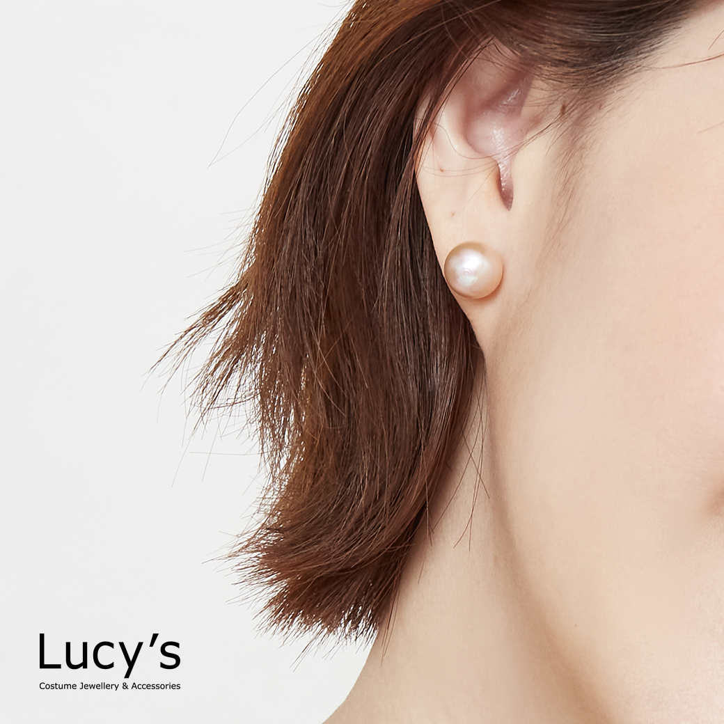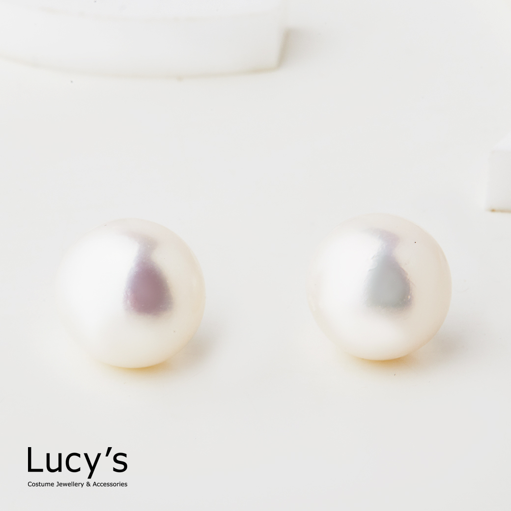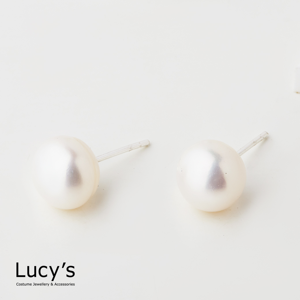925純銀 大方珍珠 耳環 (二色) (126590/126591)