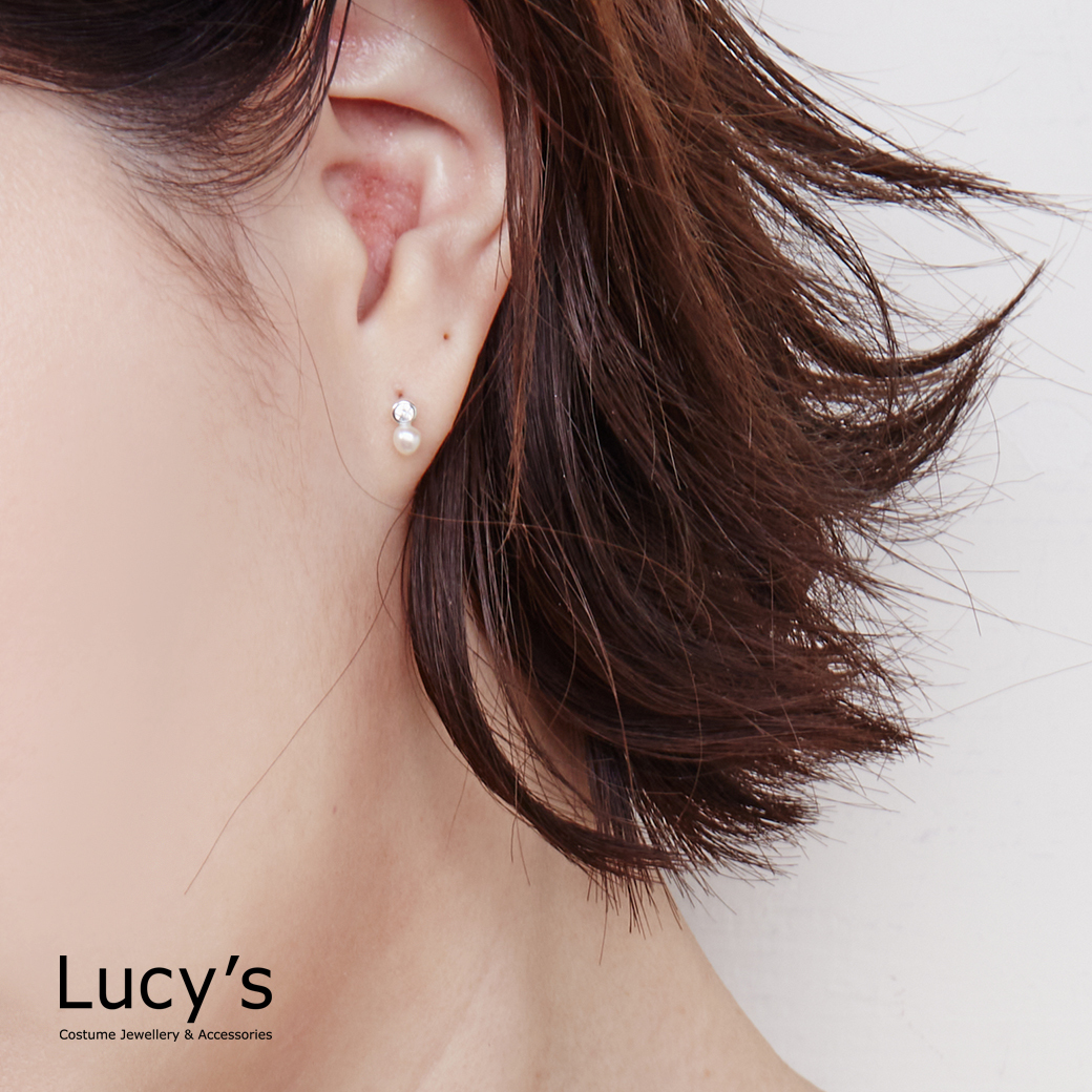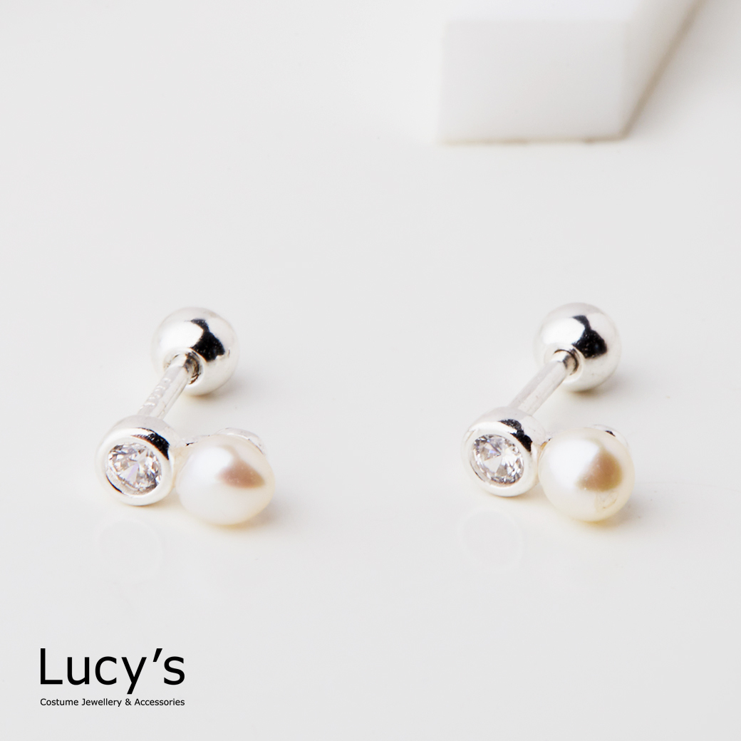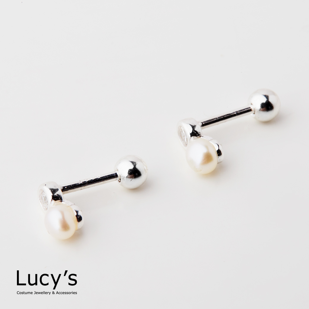 925純銀 迷你珍鑽 轉珠耳環 (126939)