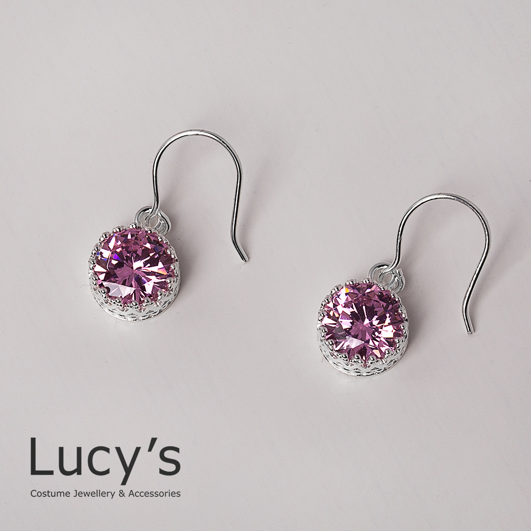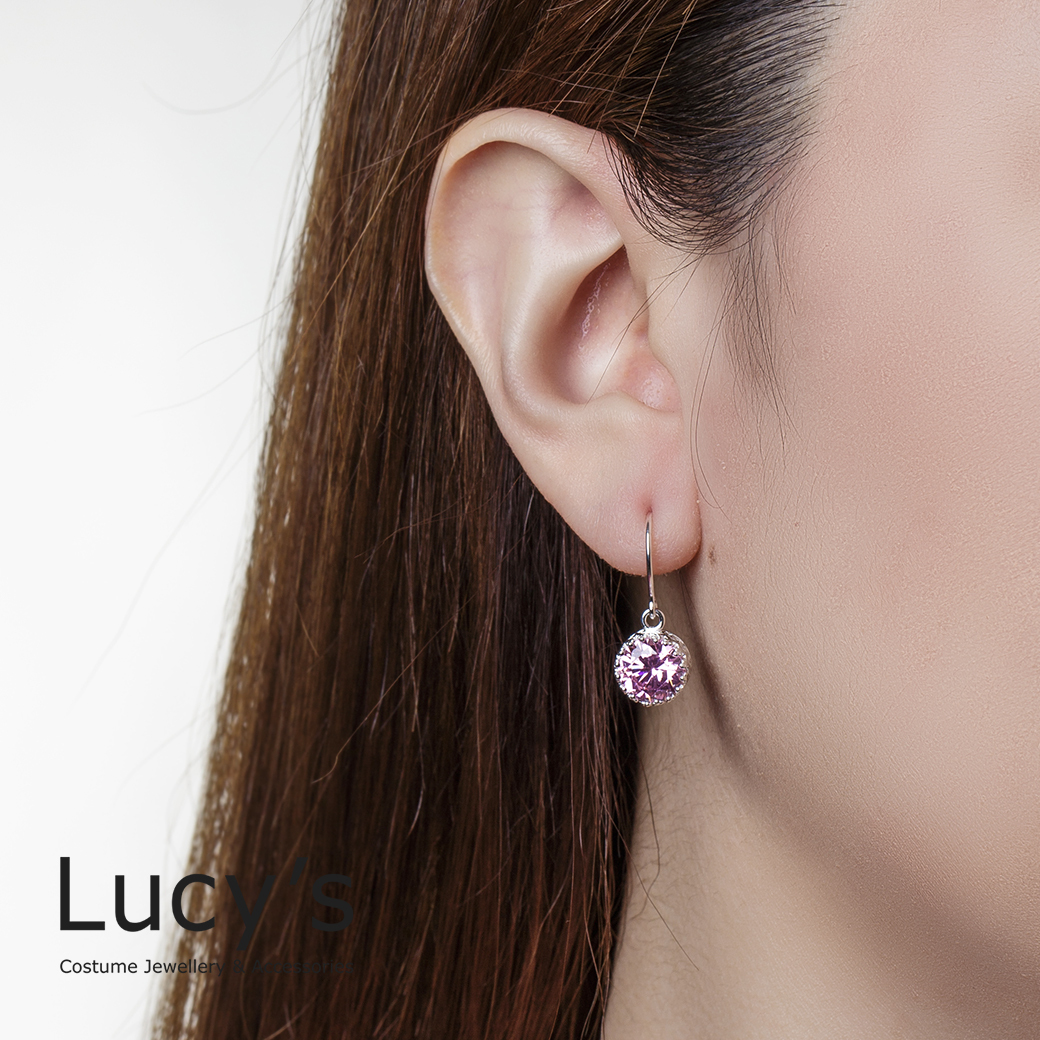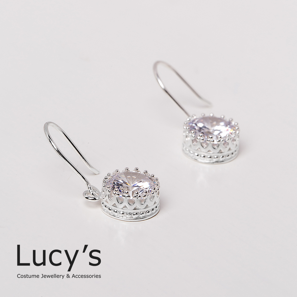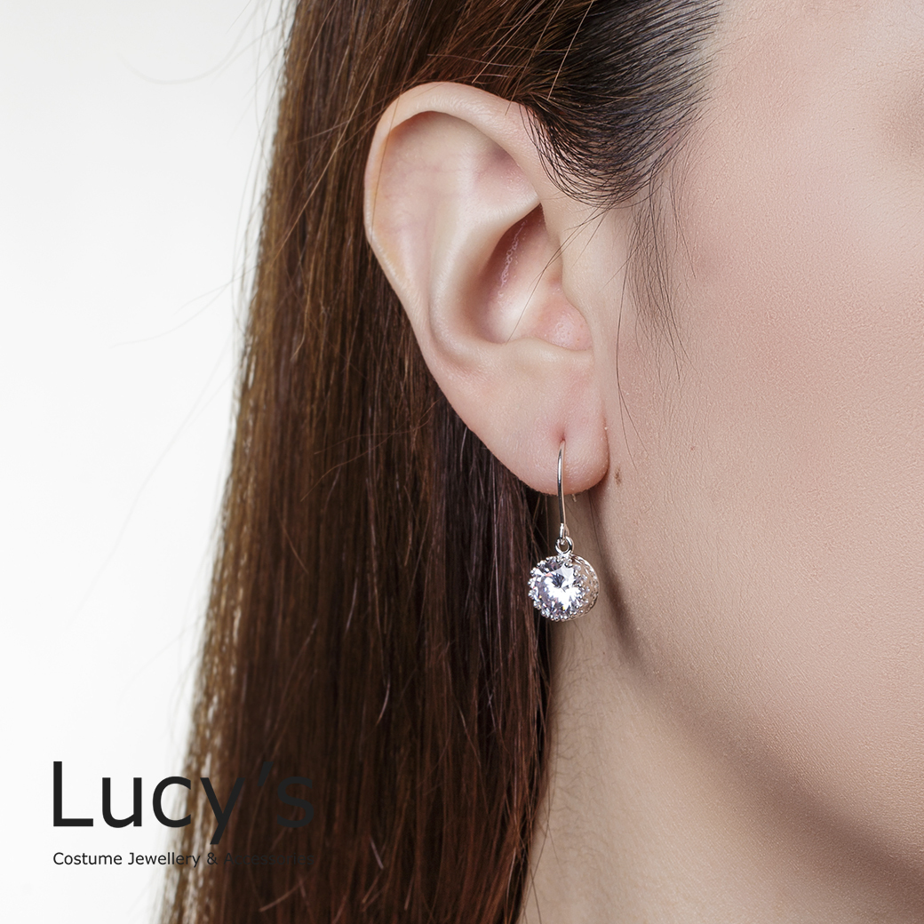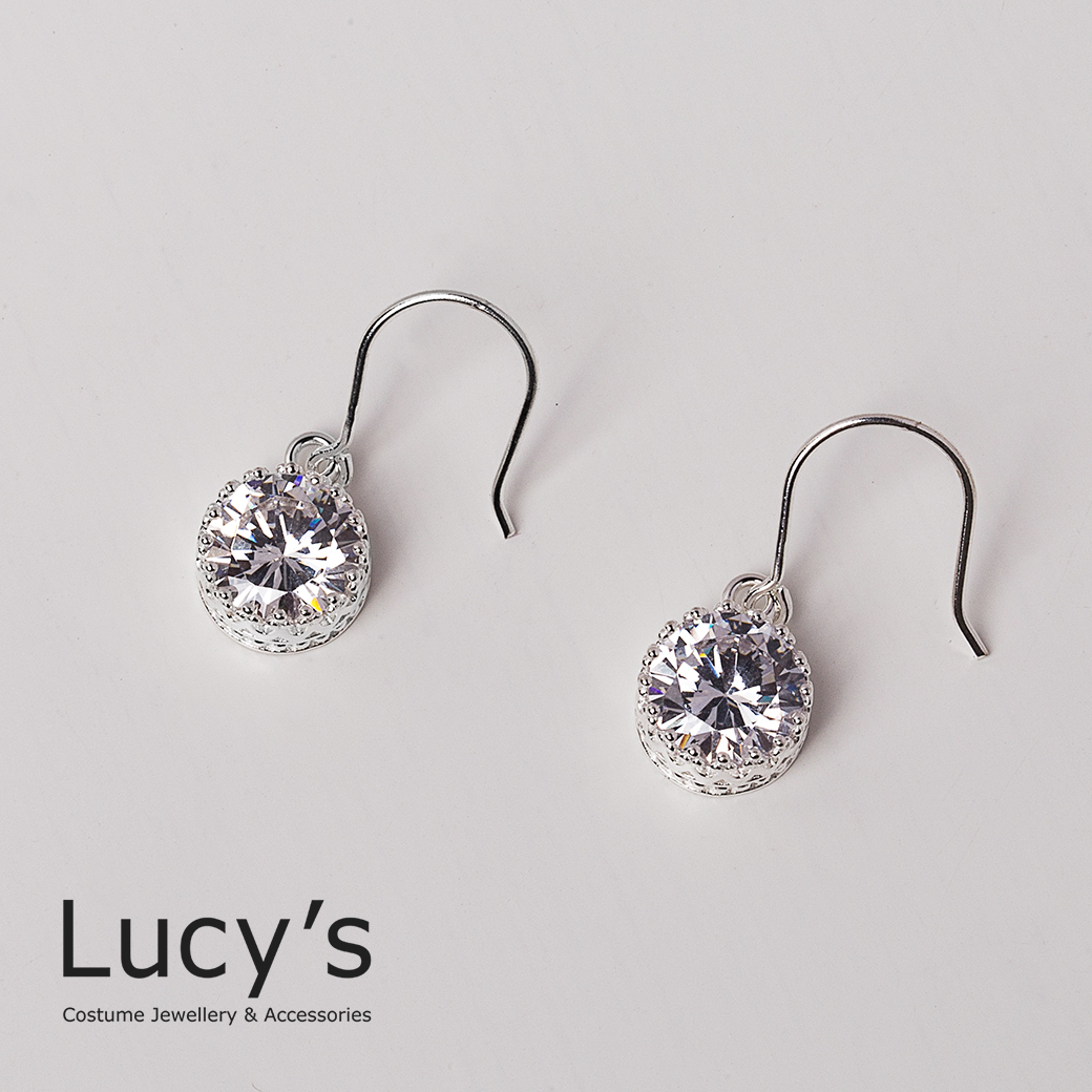 925純銀 圓形鋯石 耳勾耳環 (二色) (18531/100961)