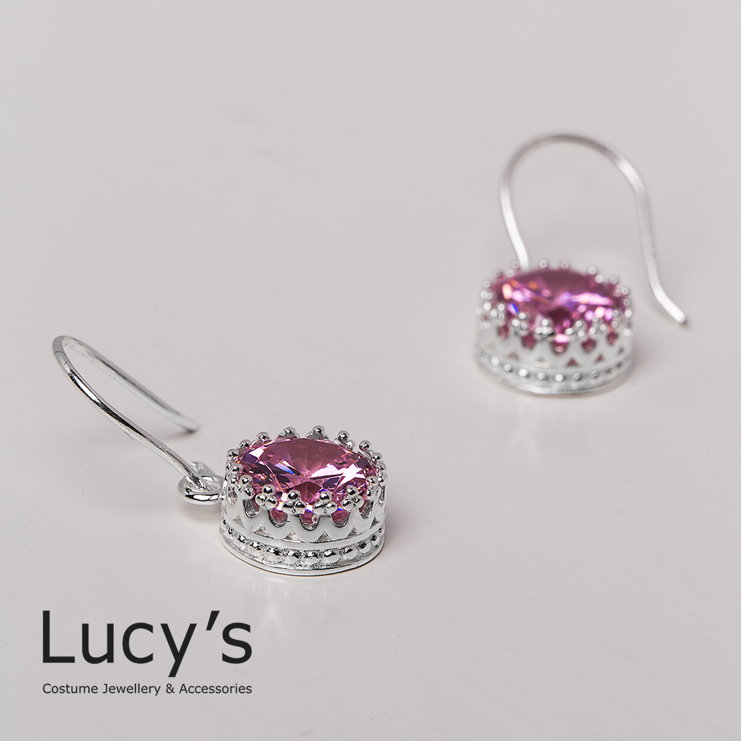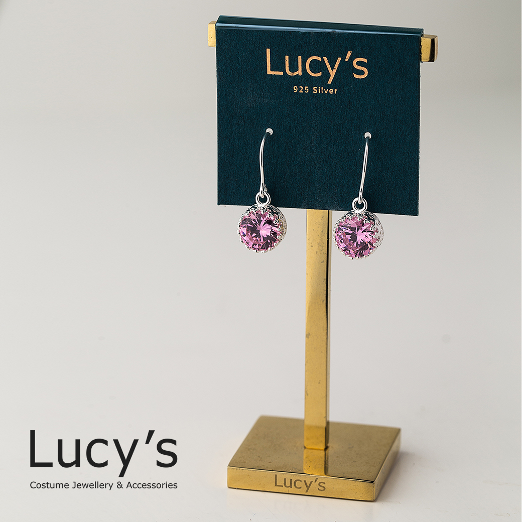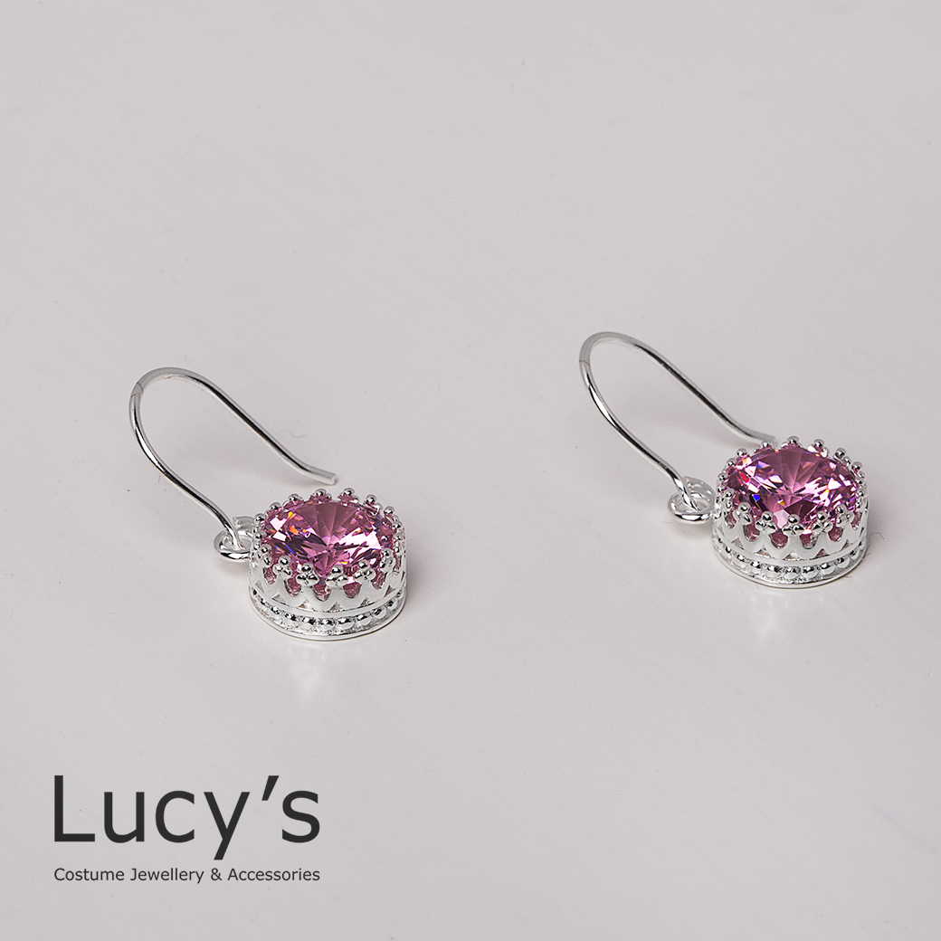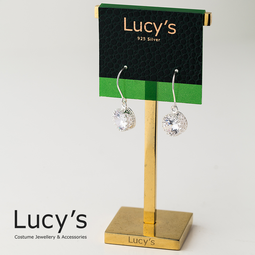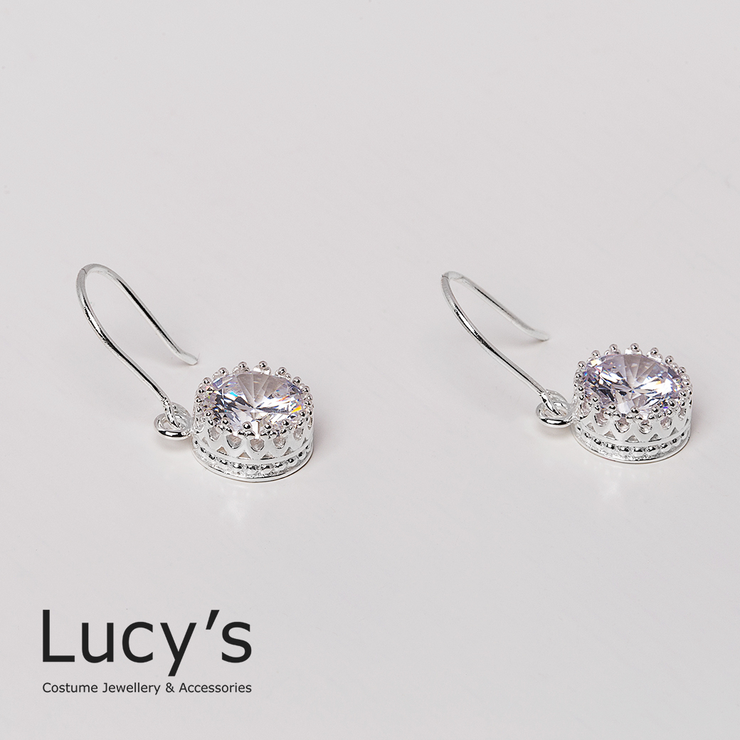 925純銀 圓形鋯石 耳勾耳環 (二色) (18531/100961)