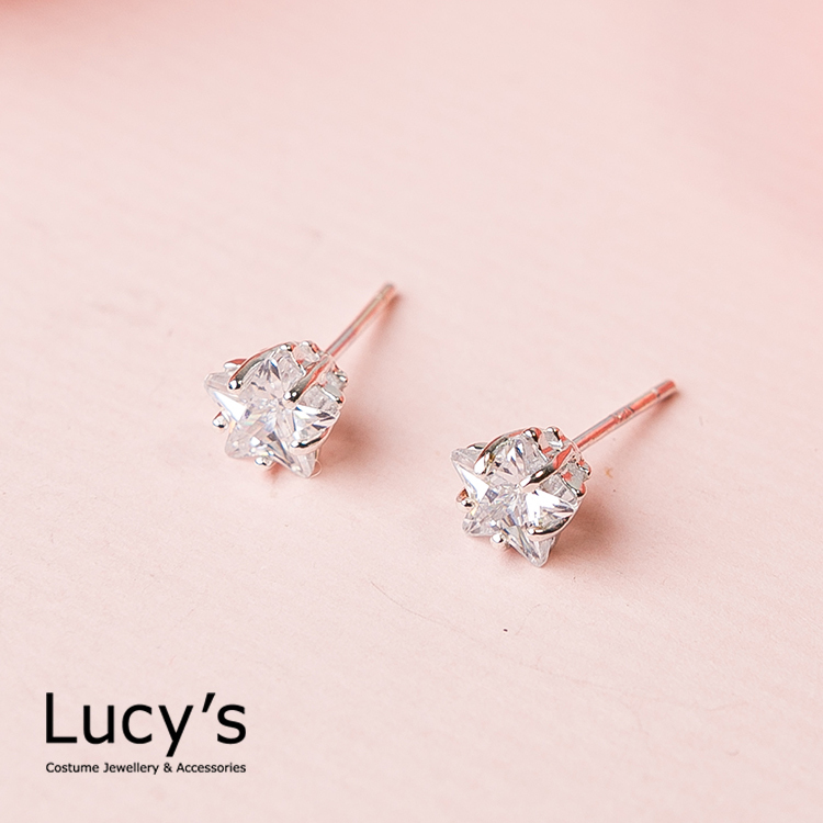 925純銀 時尚焦點星光閃耀耳環 - 0.6 cm(23188)