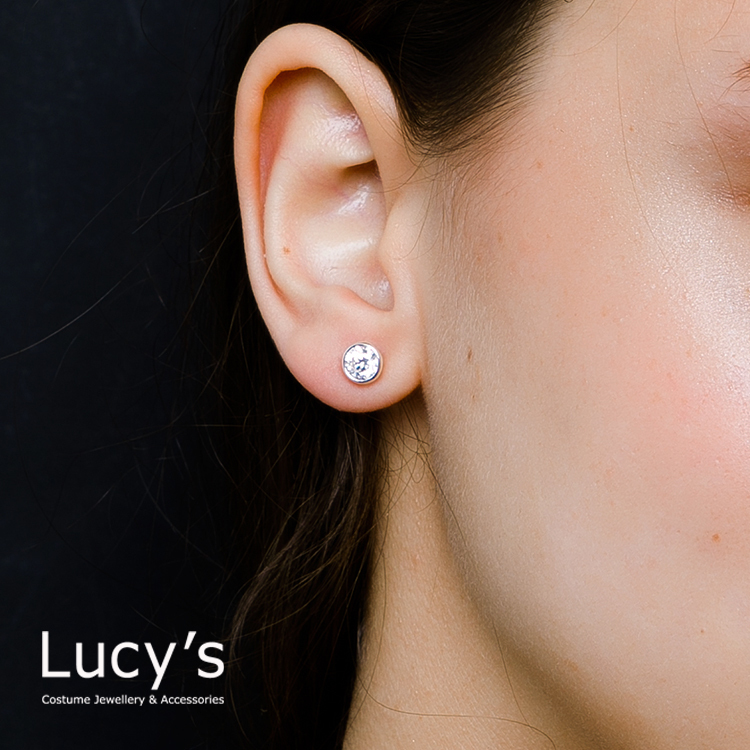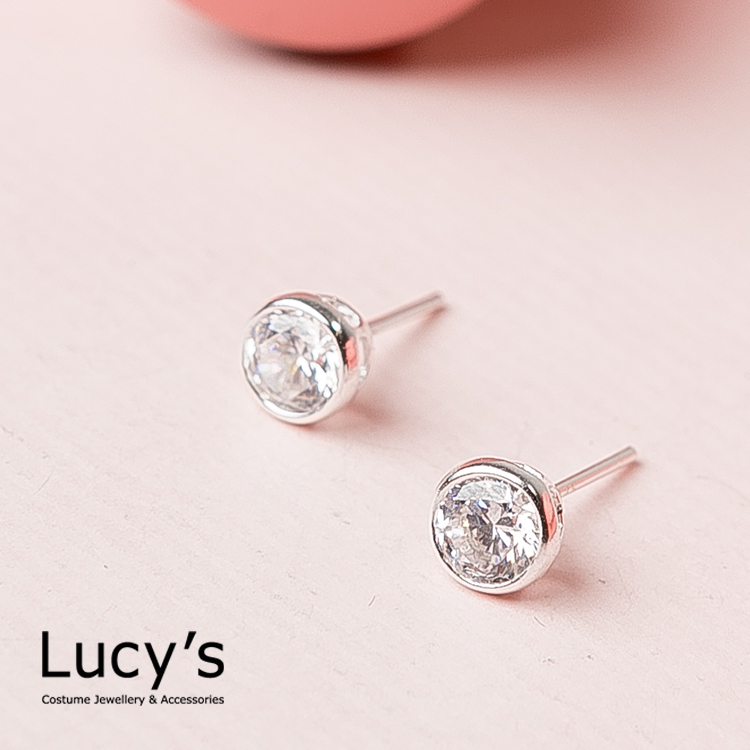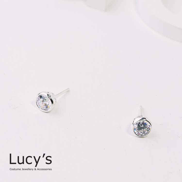925純銀 歐美簡約圓形鋯石耳環-0.5cm (23202)