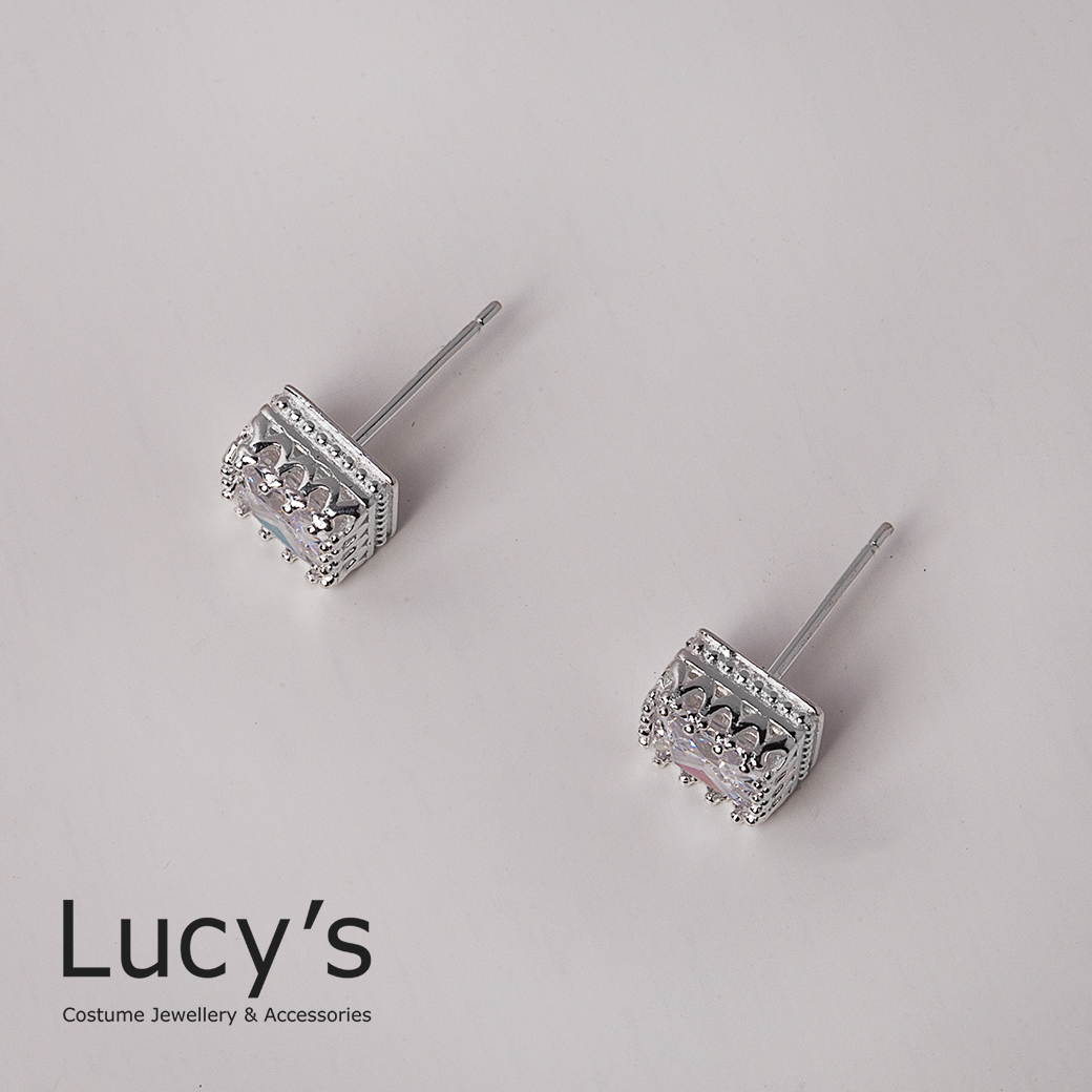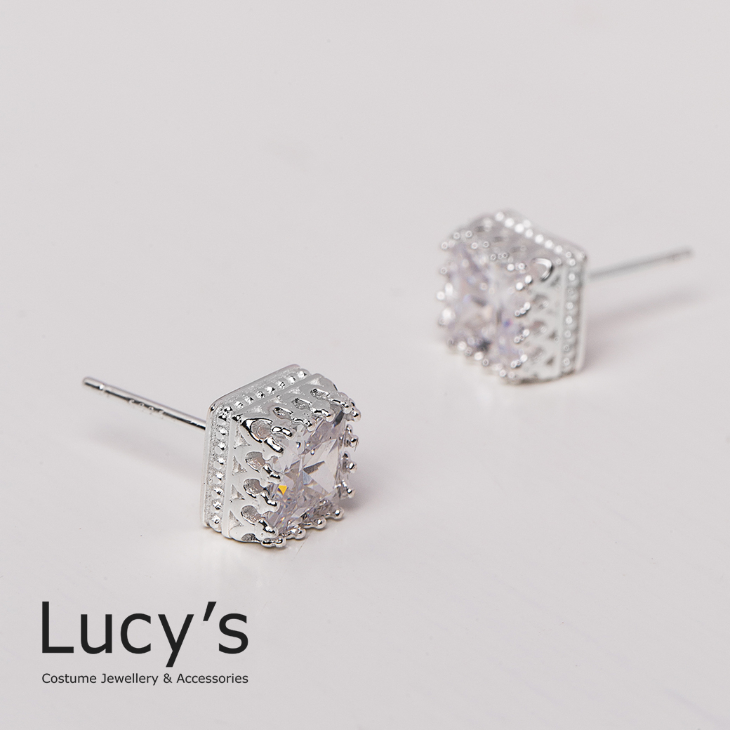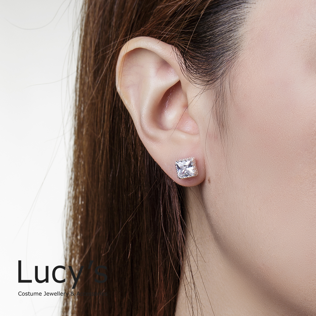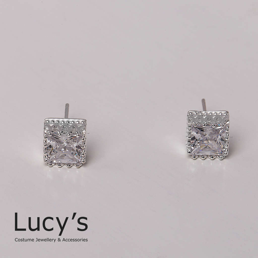 925純銀 方形鋯石 耳環 (二色) (26098/100957)