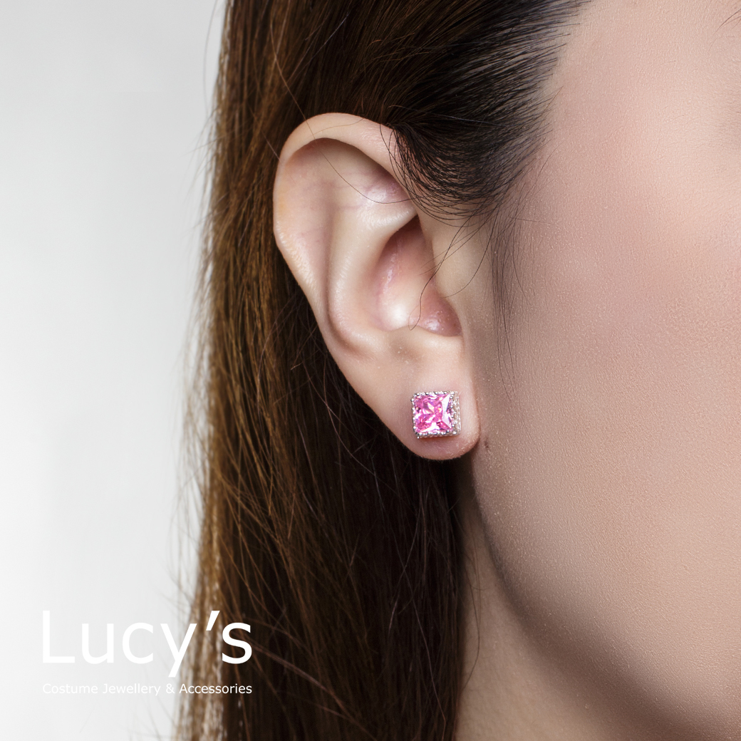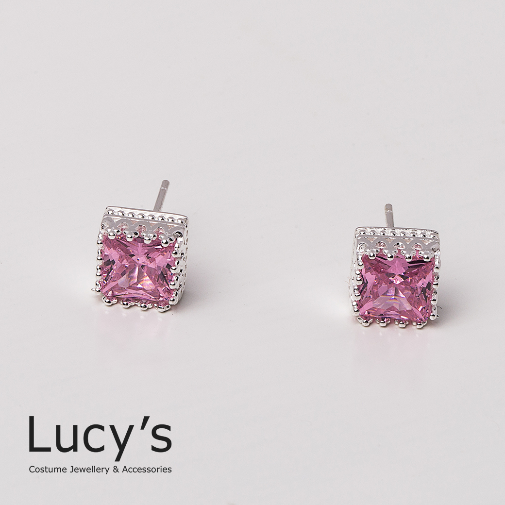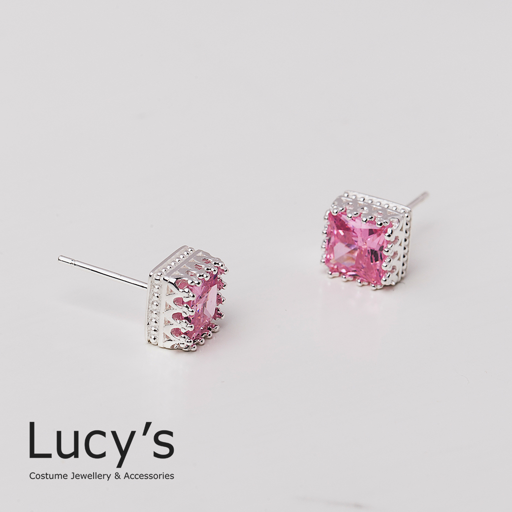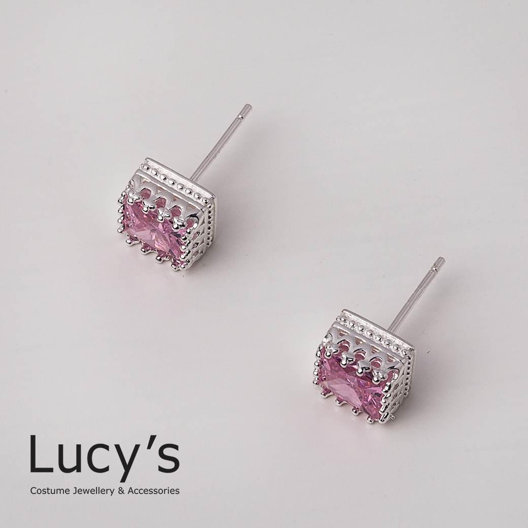 925純銀 方形鋯石 耳環 (二色) (26098/100957)