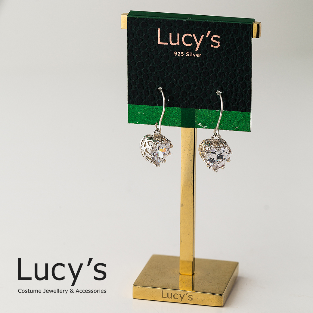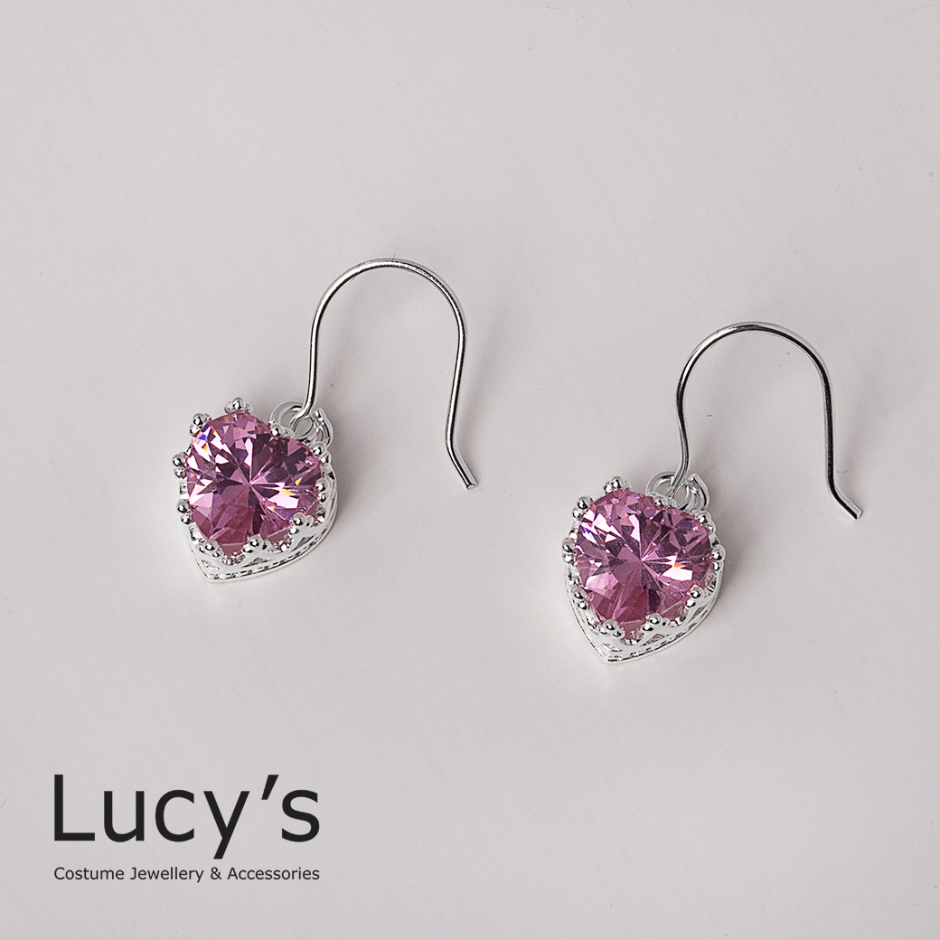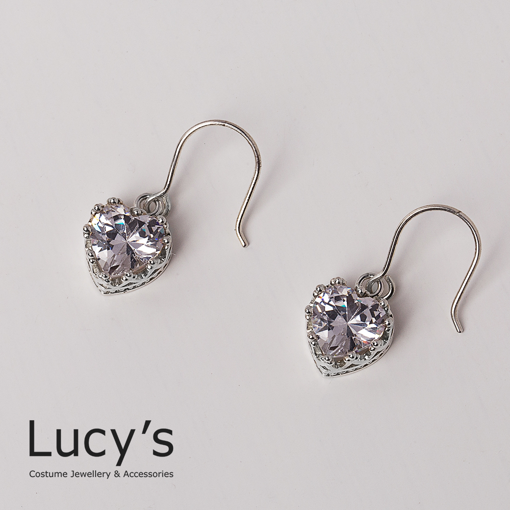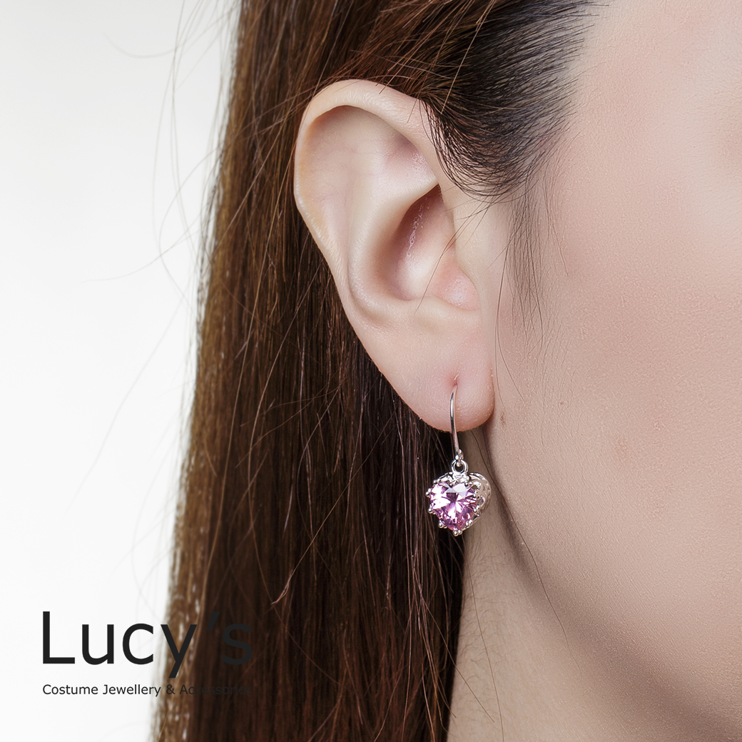925純銀 愛心鋯石 耳勾耳環 (二色) (32266/100959)