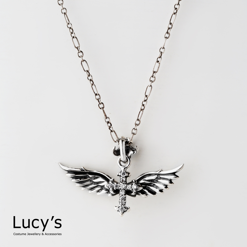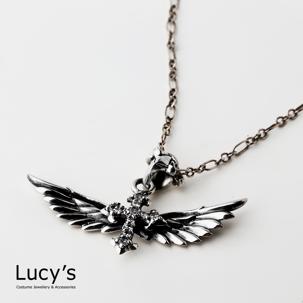 925純銀 羽翼十字 硫化項鍊 (32524)