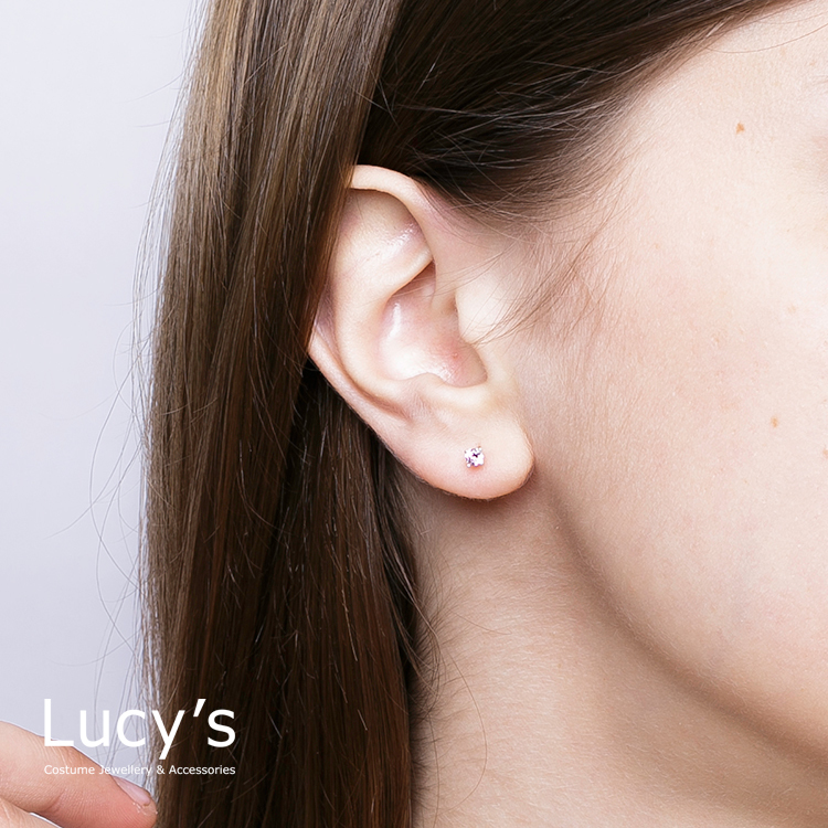 925純銀 氣質簡約粉鑽耳環-0.3cm(65562)