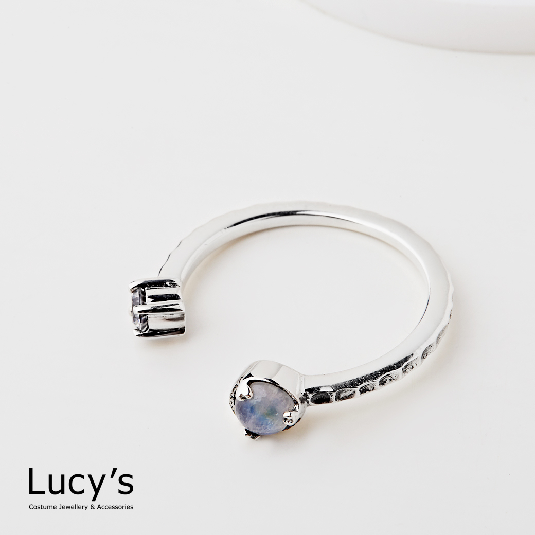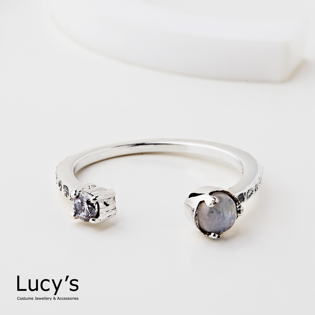 925純銀 鑽與月光 硫化開口戒 (70046)