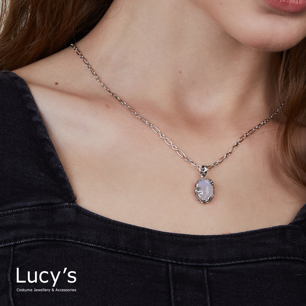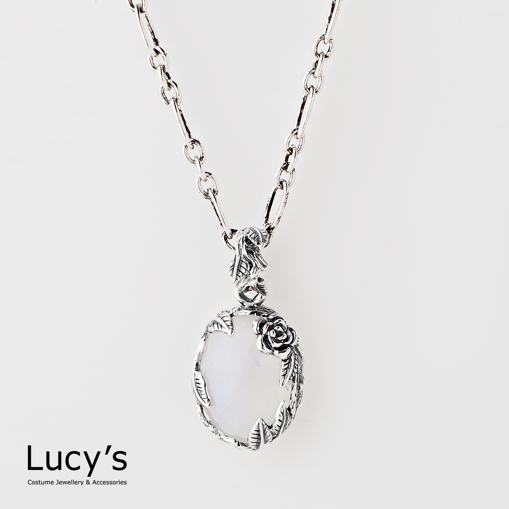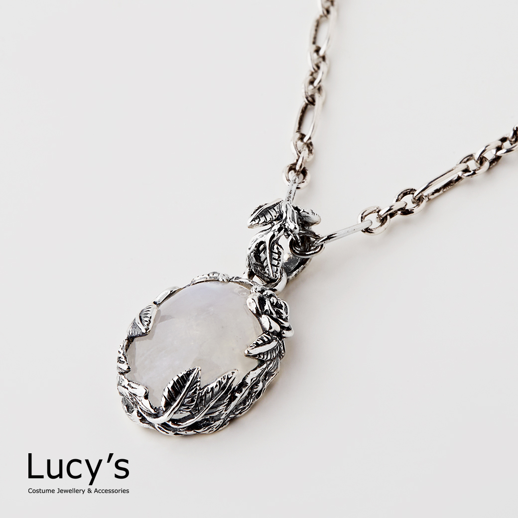 925純銀 葉掩月光石 硫化項鍊 (76979)