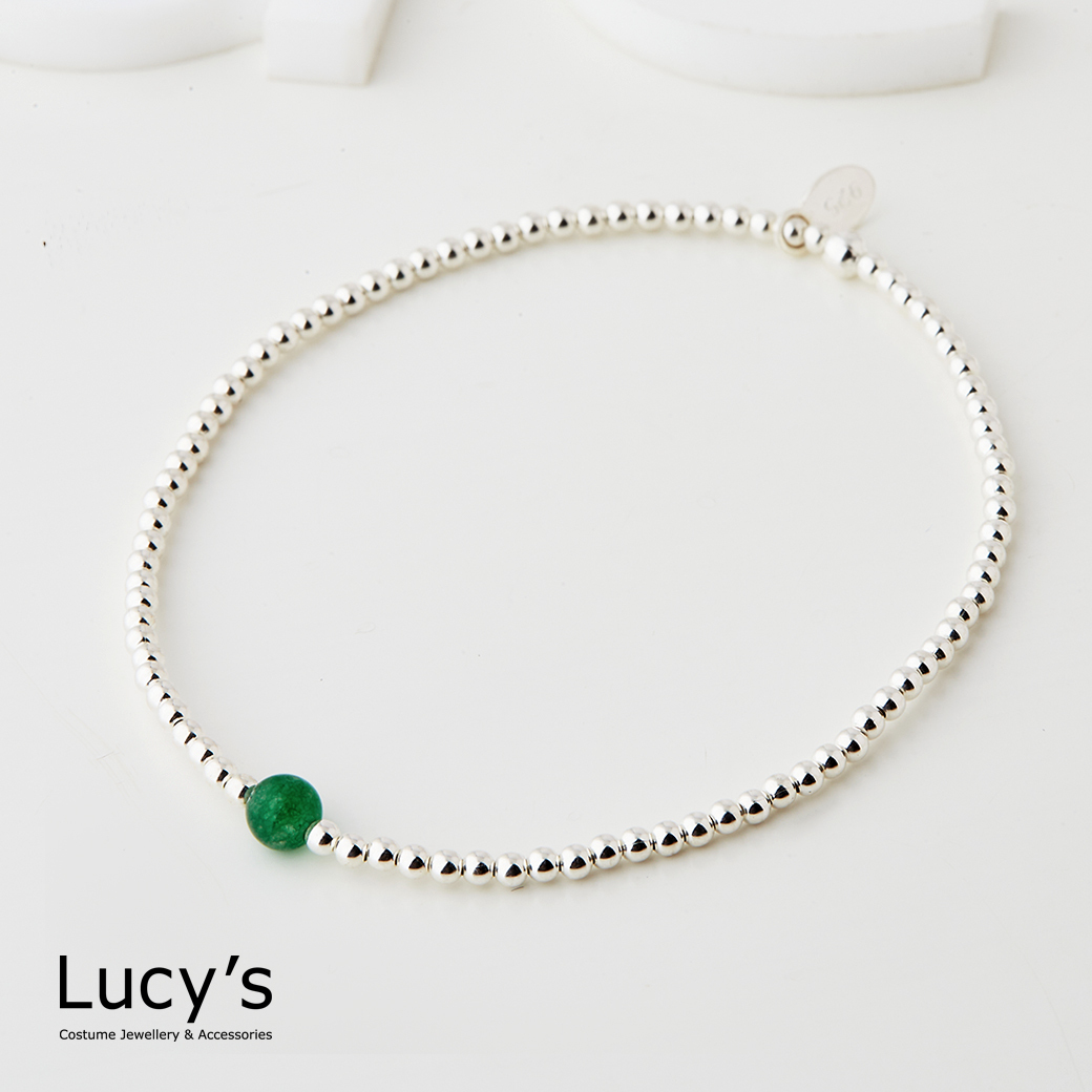 925純銀 簡約玉髓 彈性手鍊 (94802)