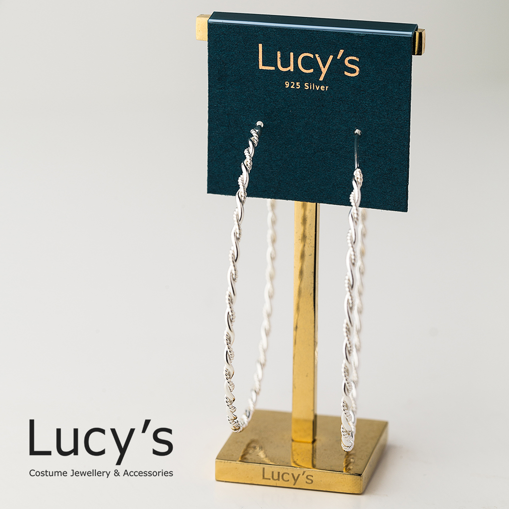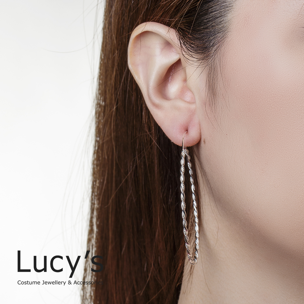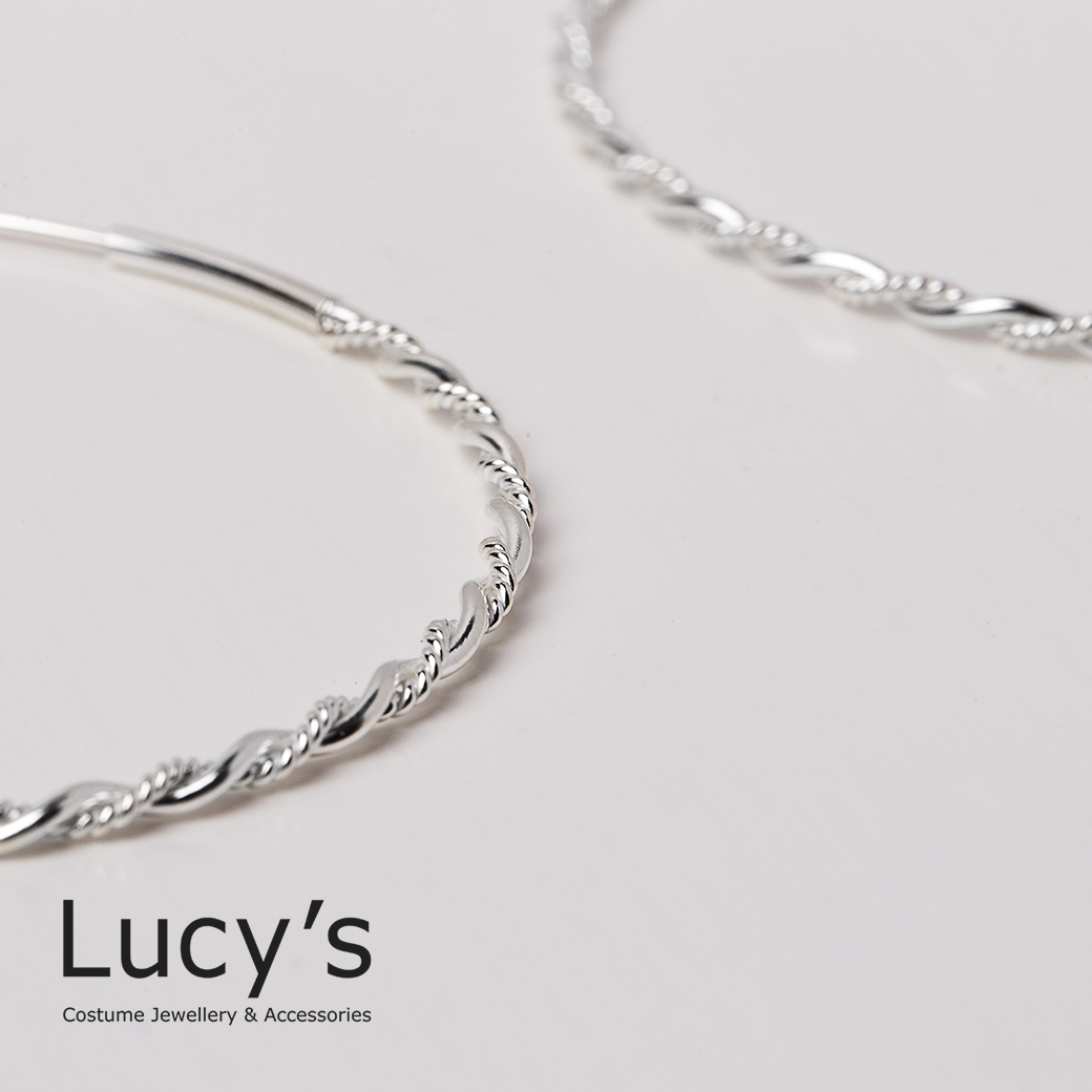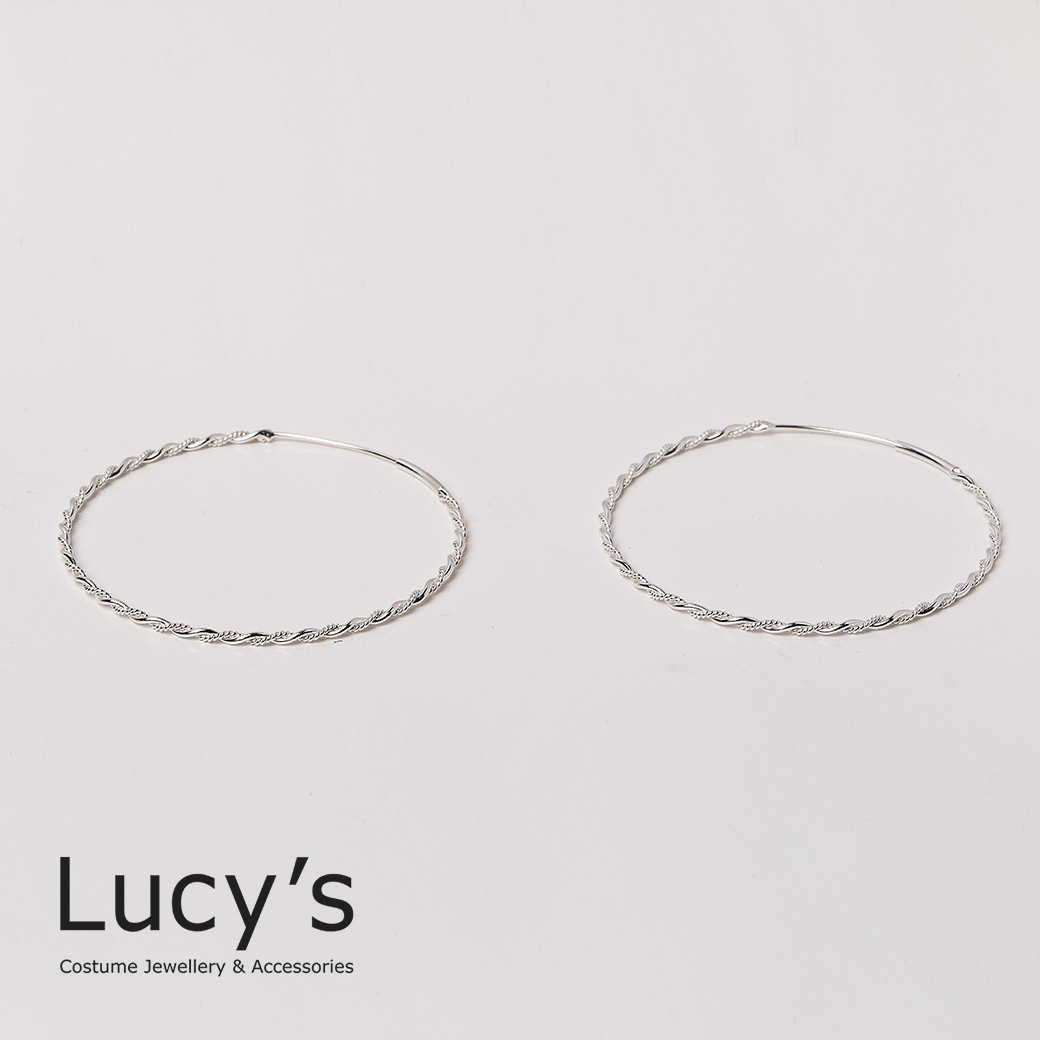 925純銀 細麻花圈XL 圈型耳環 (97626)