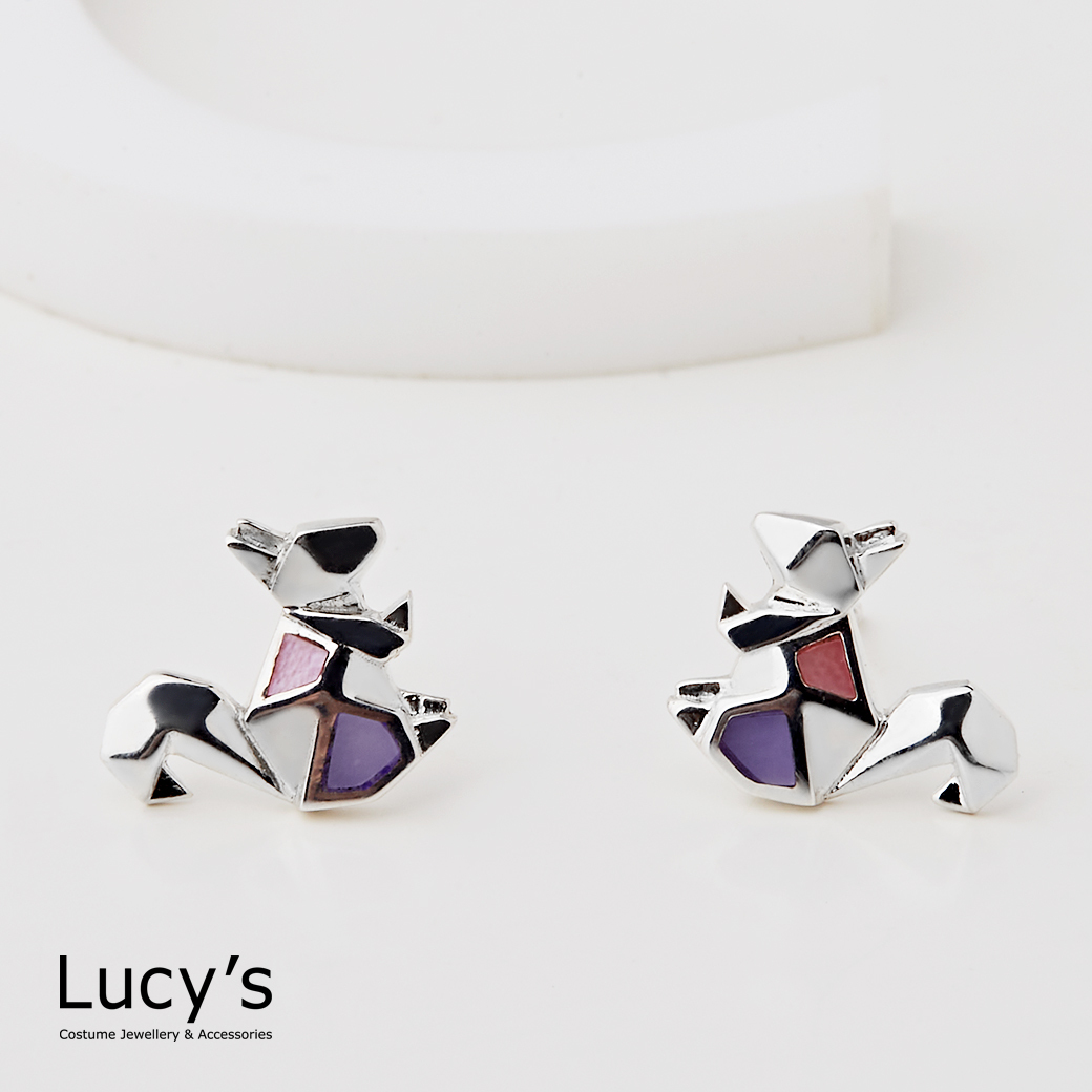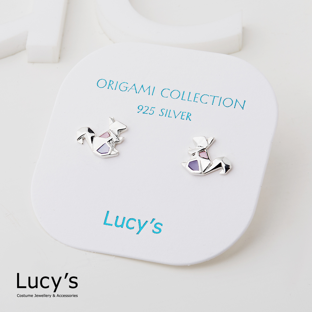 純銀摺紙系列|珍珠母貝松鼠 耳環 (99828)