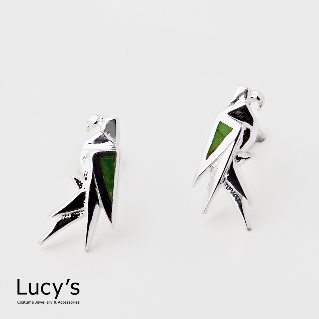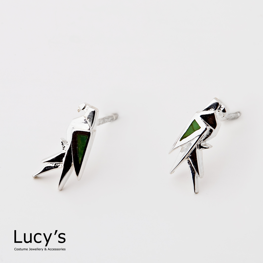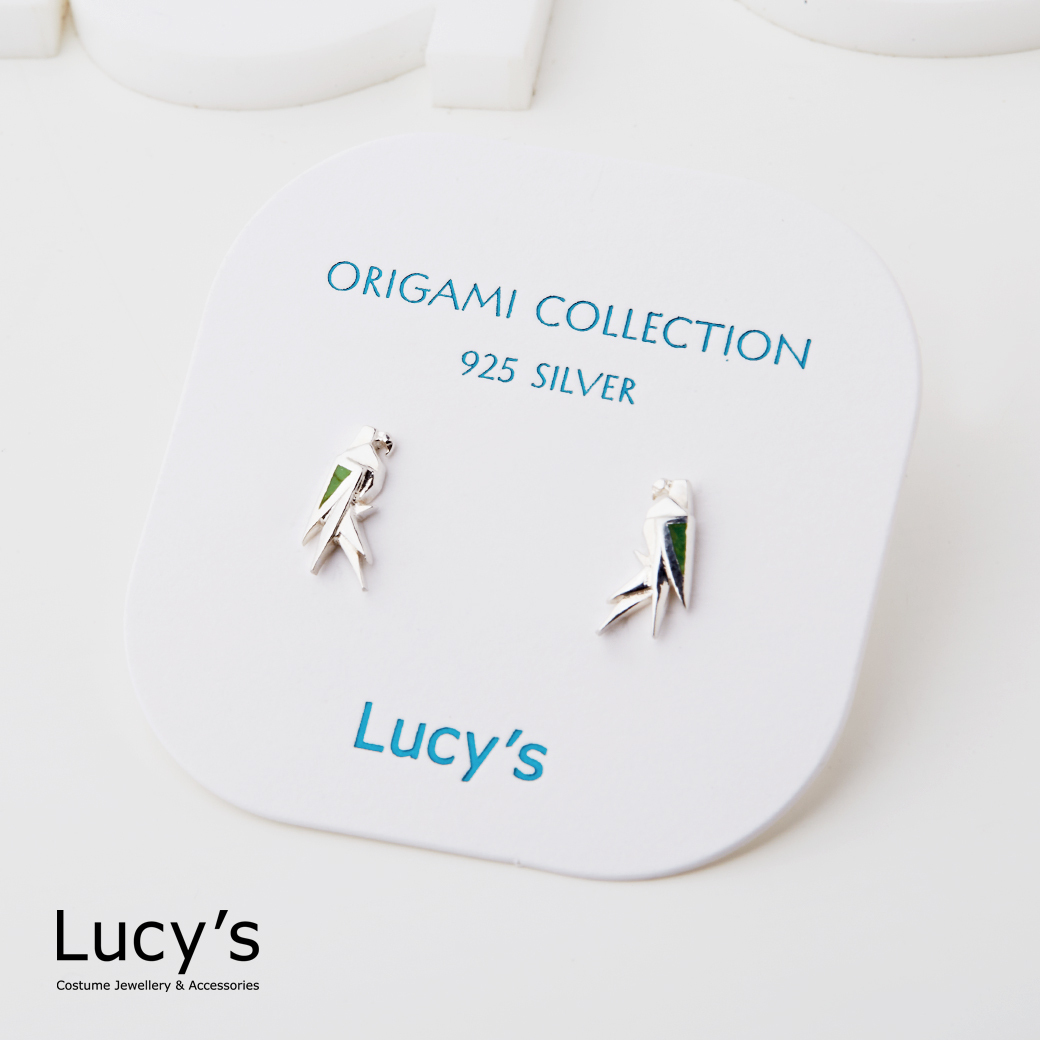 純銀摺紙系列|珍珠母貝鸚鵡 耳環 (99838)