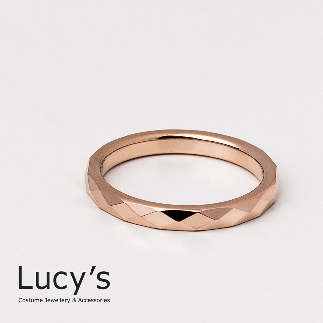 鎢鋼戒|2MM大菱格切割 (玫金) 戒指 (51016-51024)
