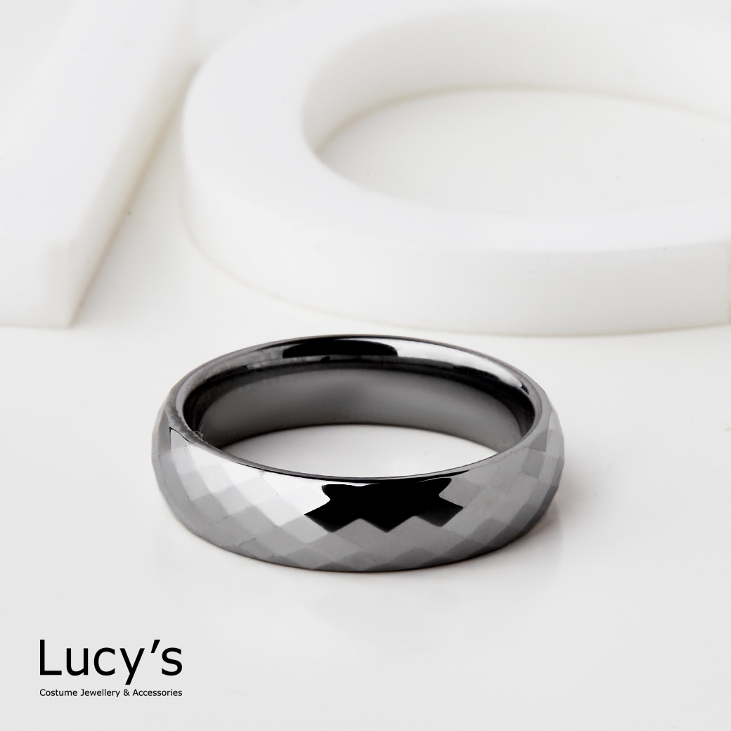 鎢鋼戒|5MM密菱格切割 (灰) 戒指 (112309-112319)