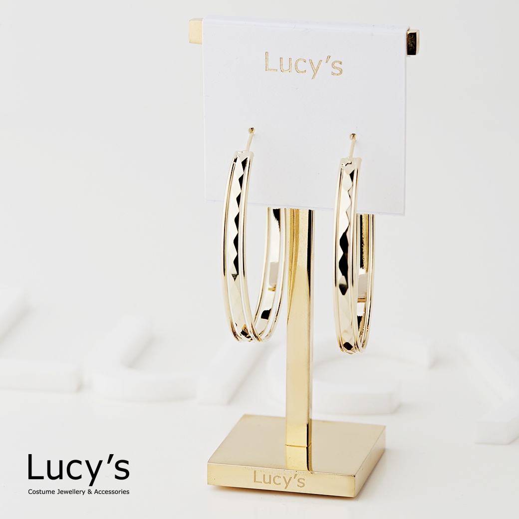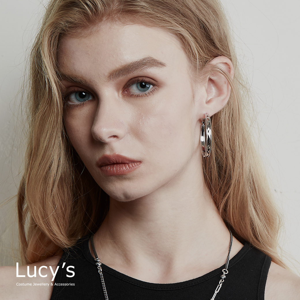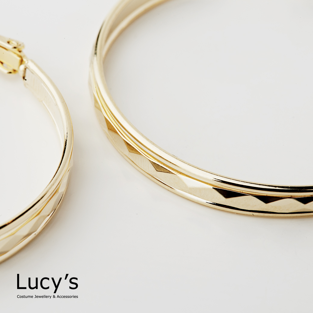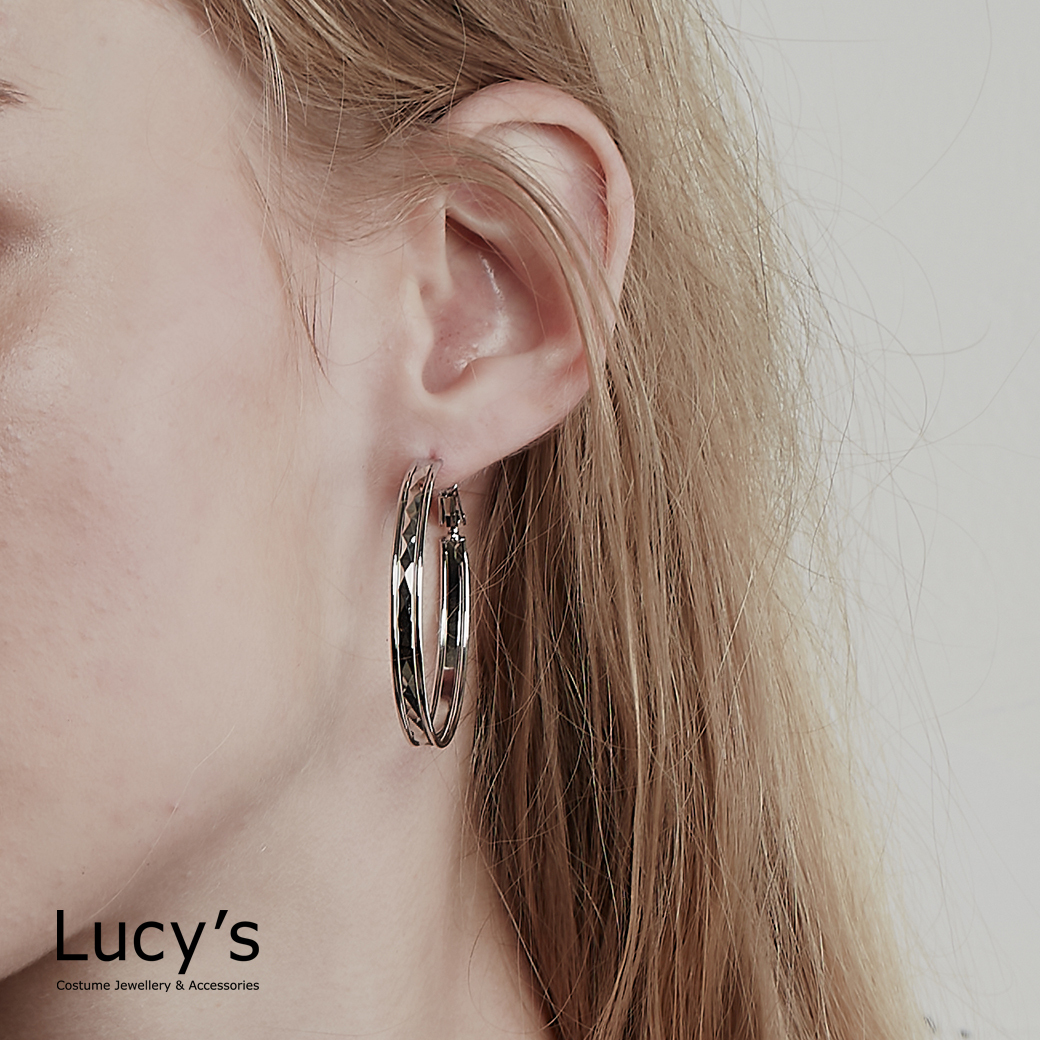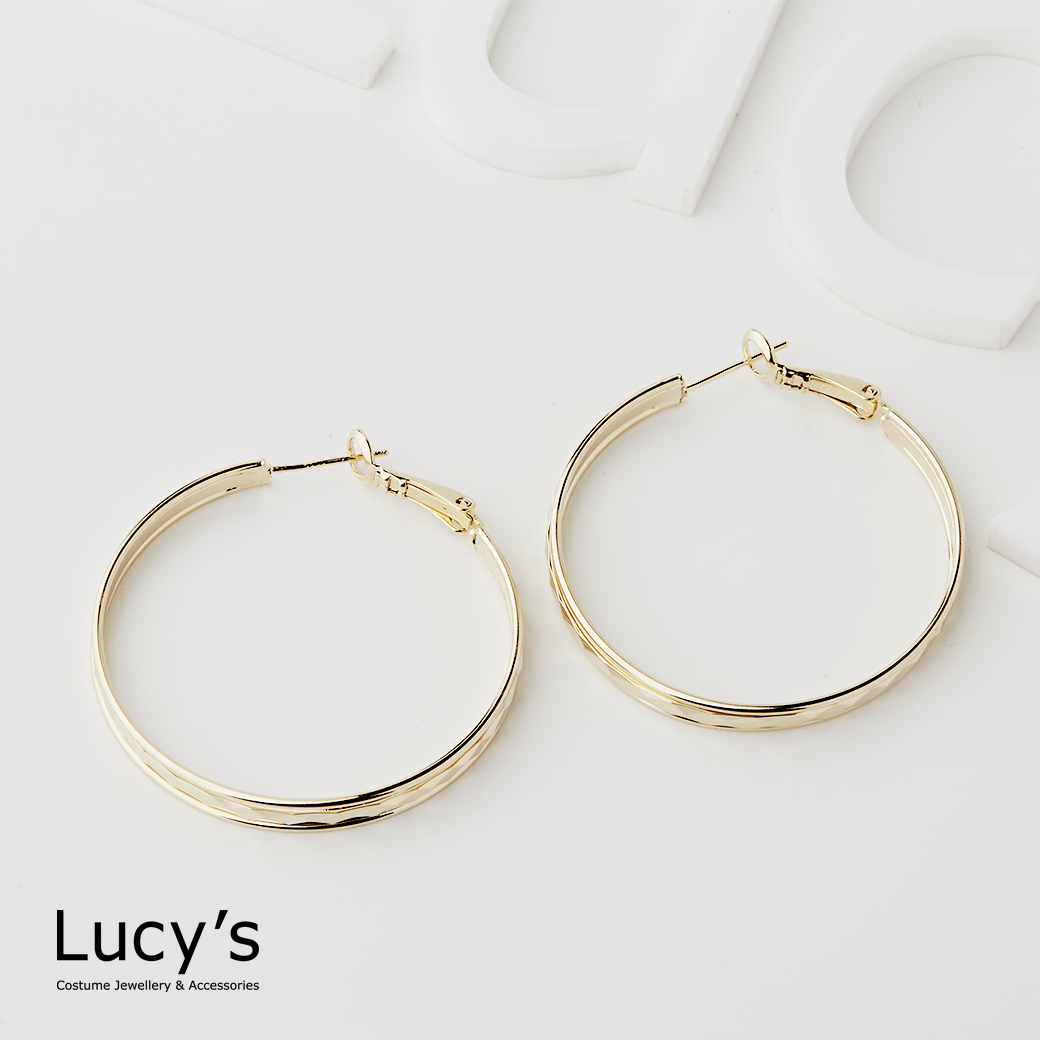 稜格紋中圈 圈型耳環 (二色) (116750/116739)