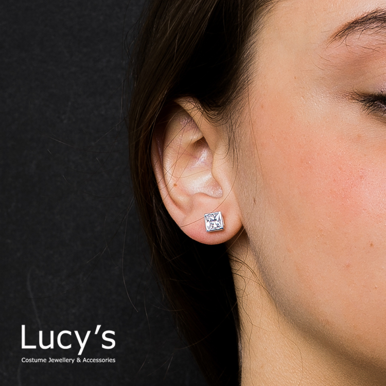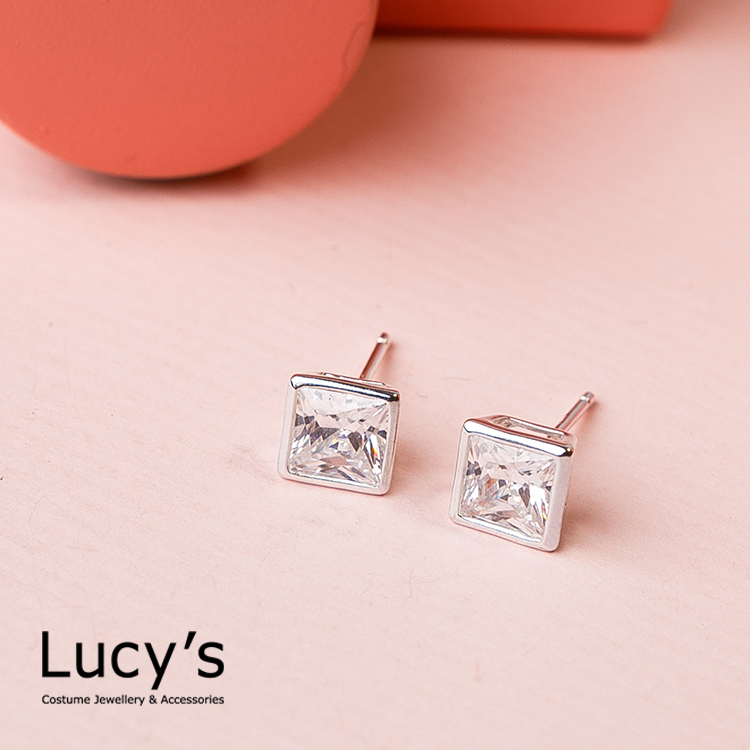 925純銀 低調閃耀方塊耳環 - 0.6cm (23205)