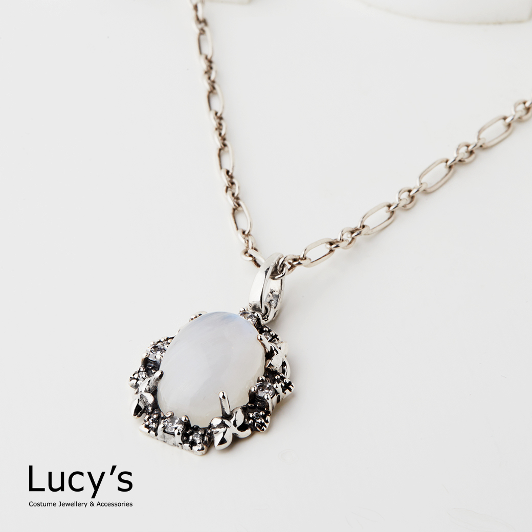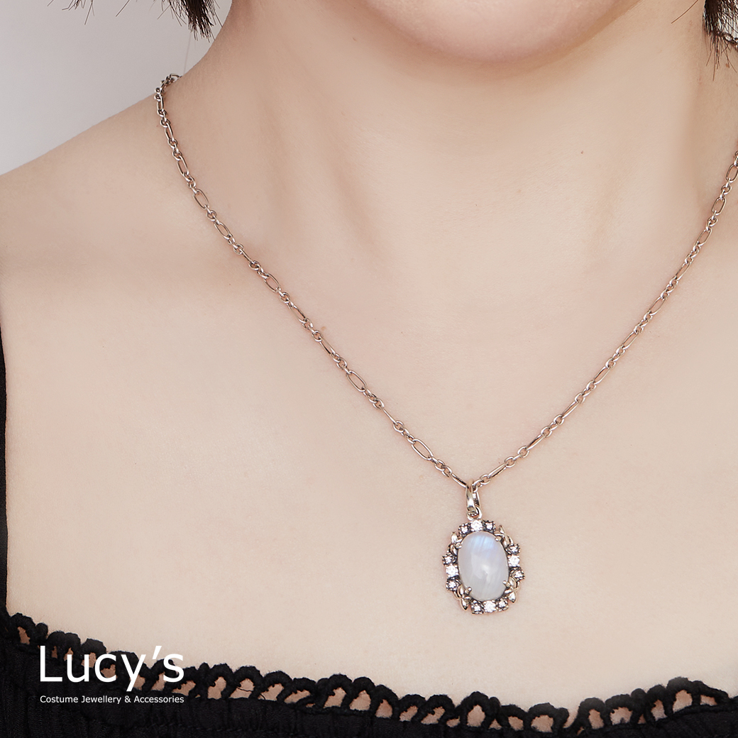 925純銀 慈愛月光石 硫化項鍊 (97689)