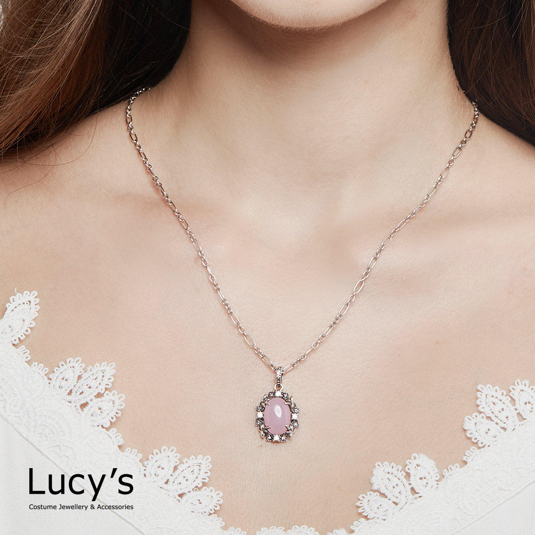 925純銀 慈愛粉玉髓 項鍊 (98344)