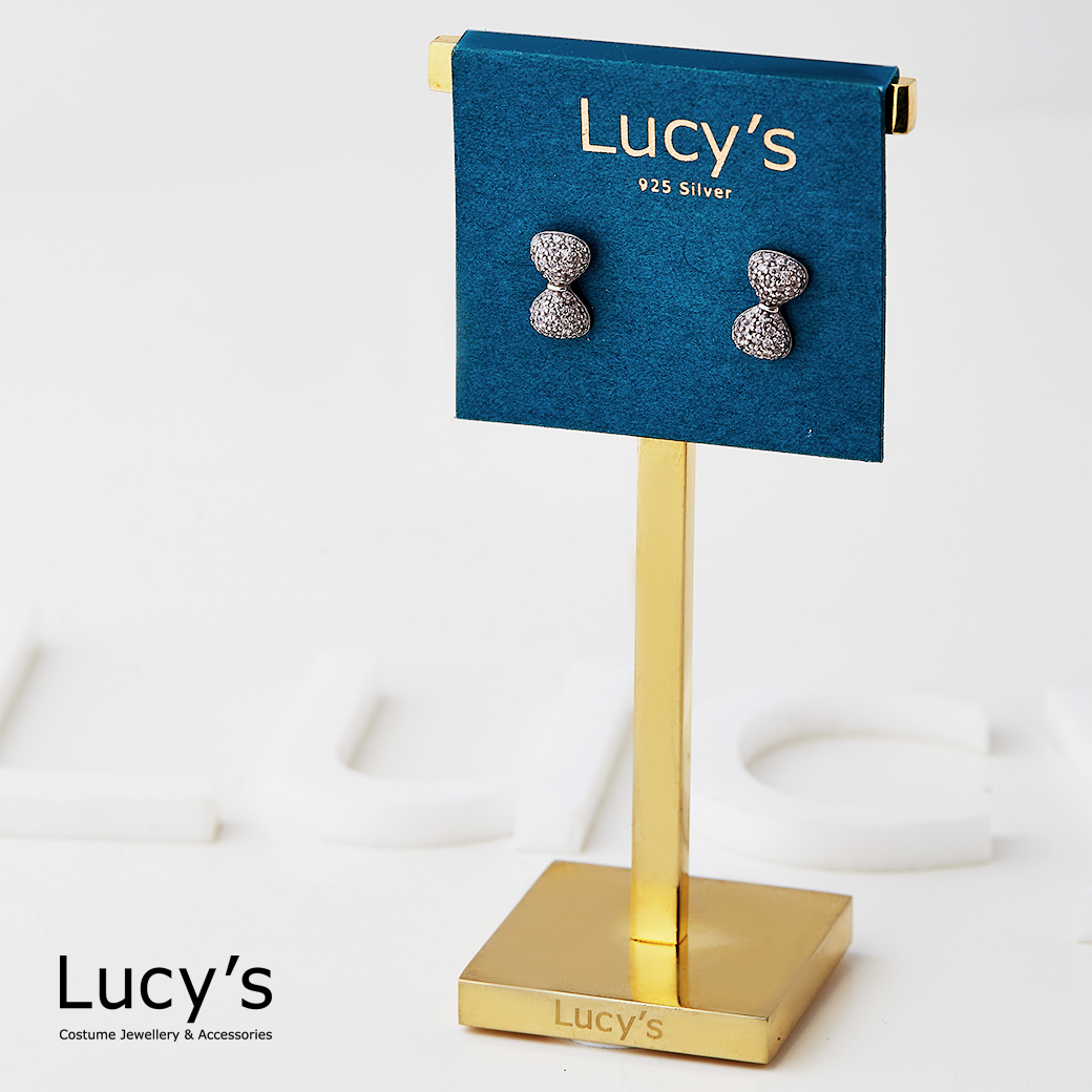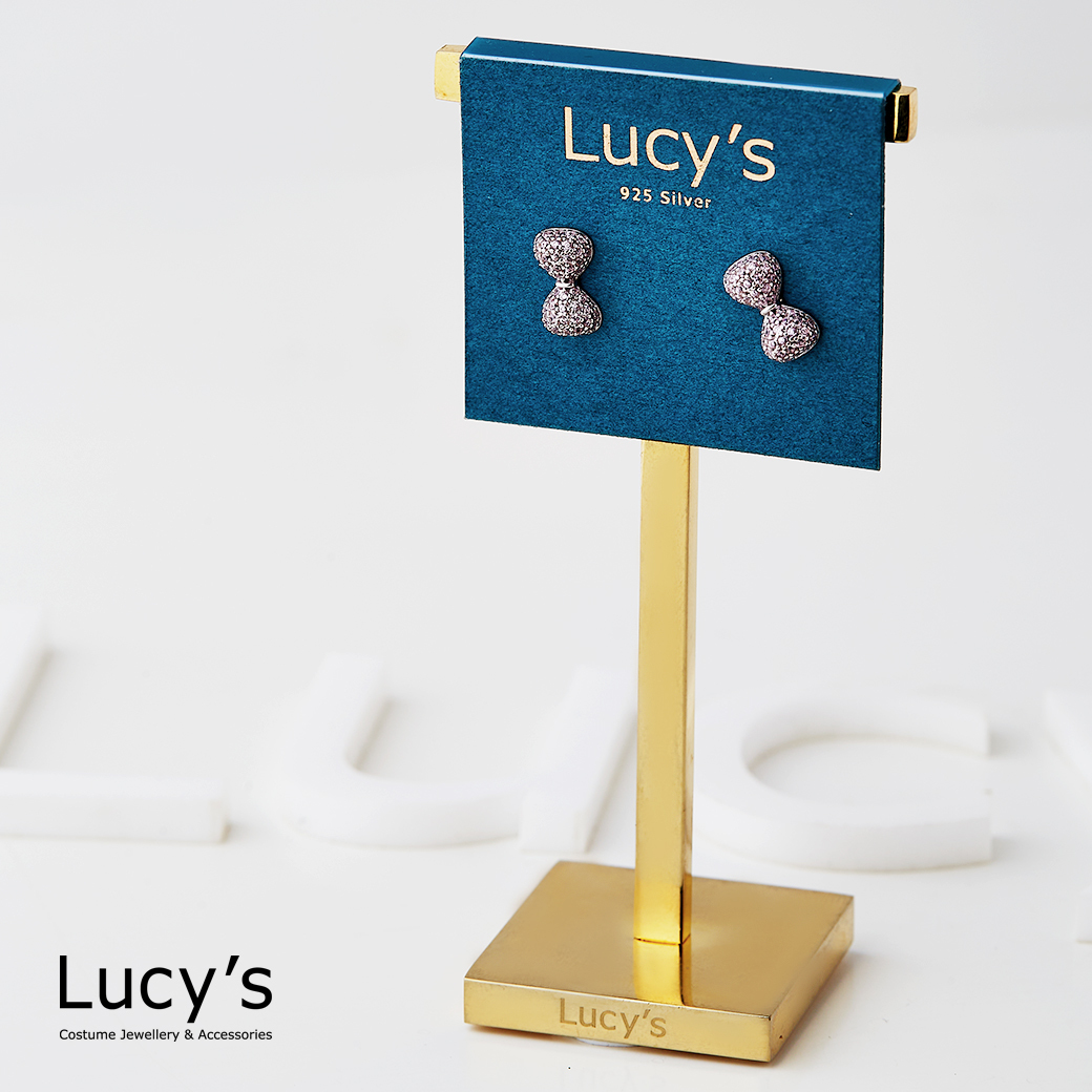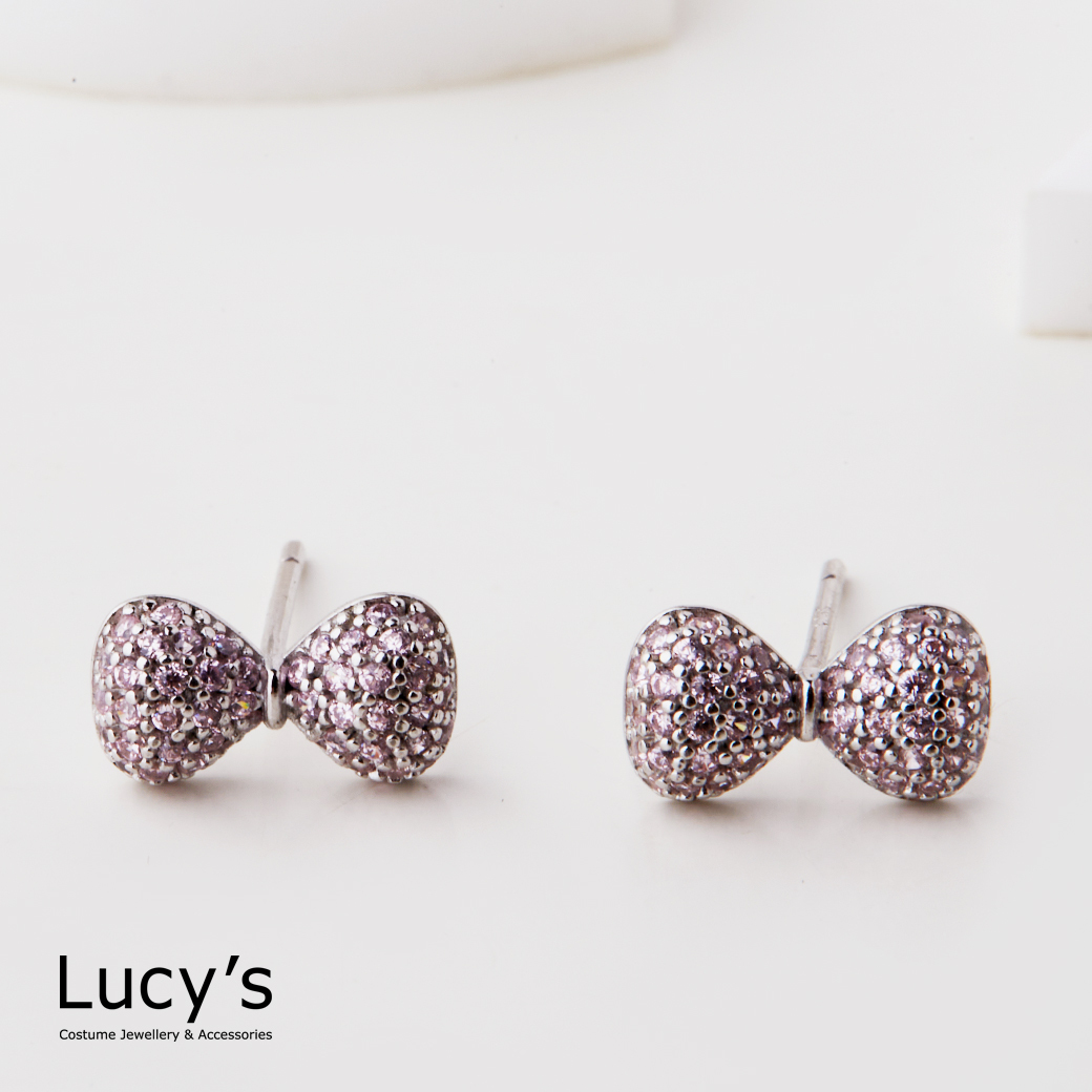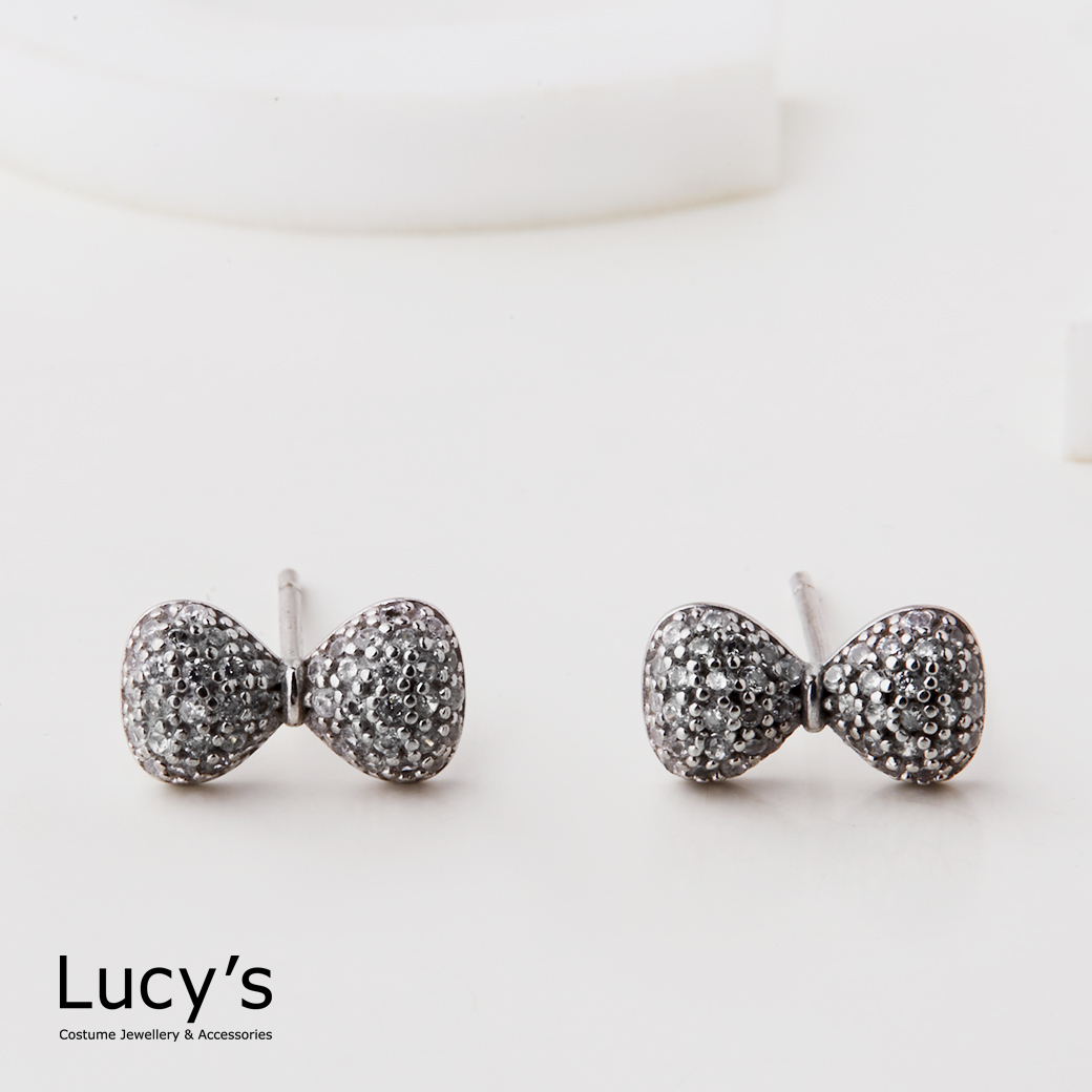 925純銀 鑲鑽蝴蝶結 耳環 (二色) (103581/103582)