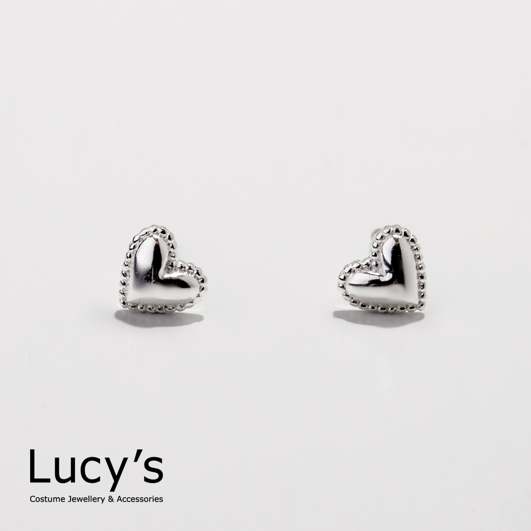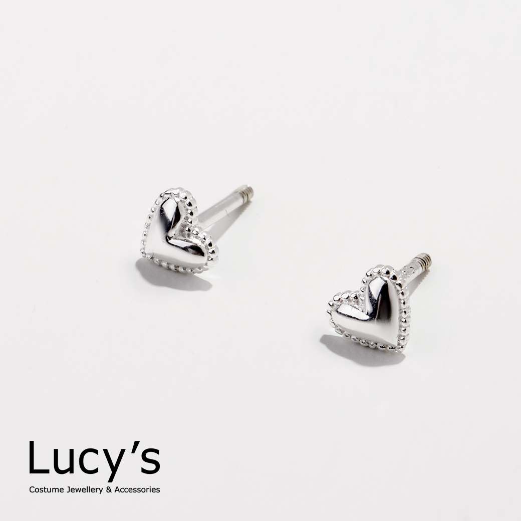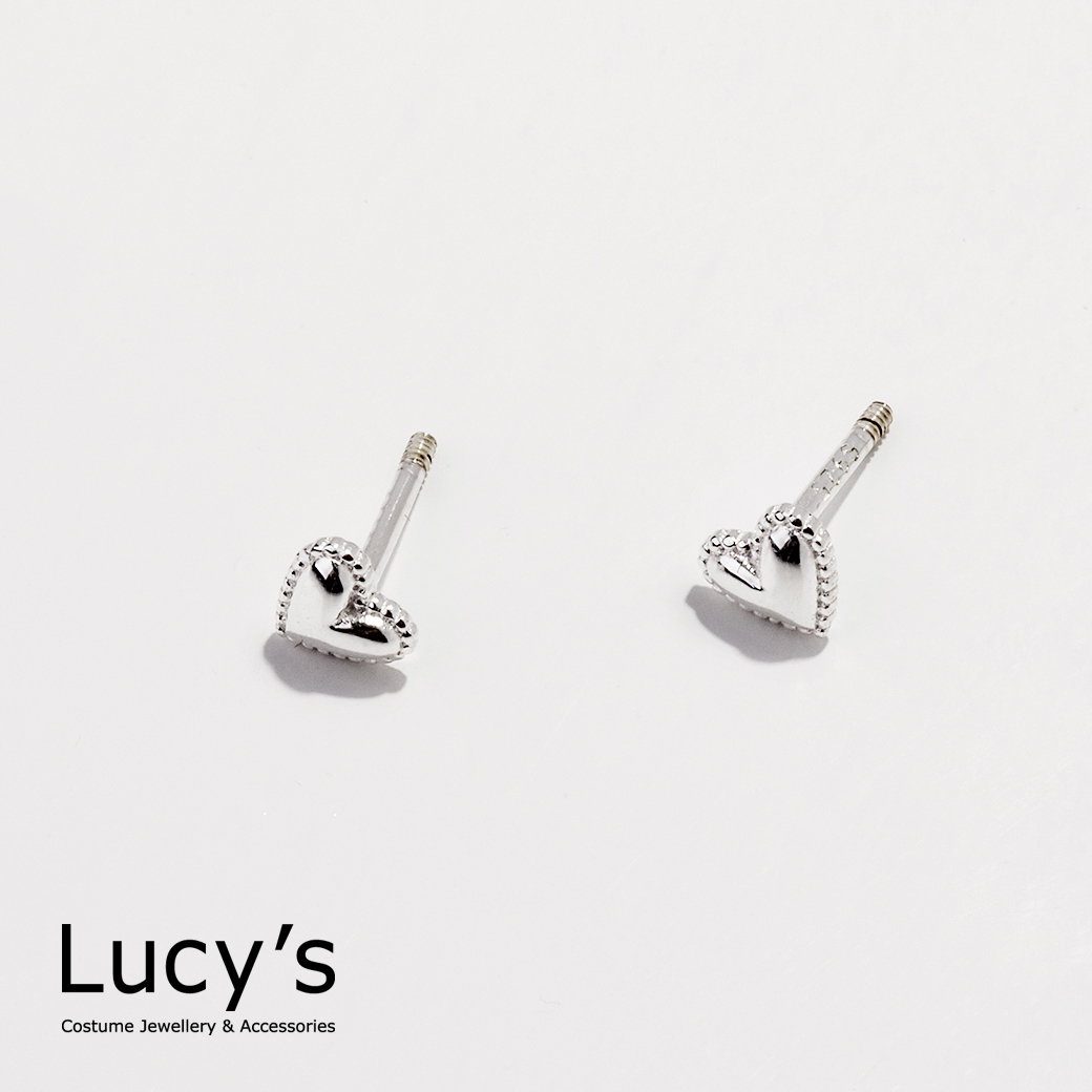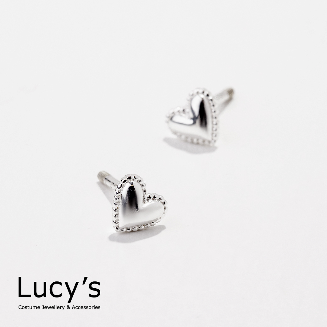925純銀 迷你鏡面愛心 轉珠耳環 (106244)