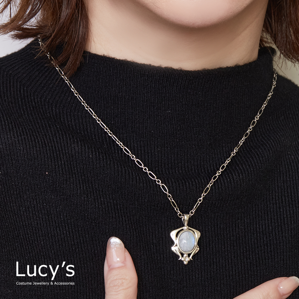925純銀 奇幻月光石 硫化項鍊 (109434)