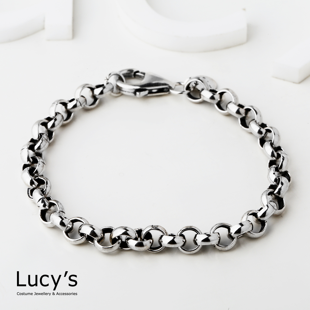 925純銀 圓鏈輪廓 硫化手鍊 (112518)