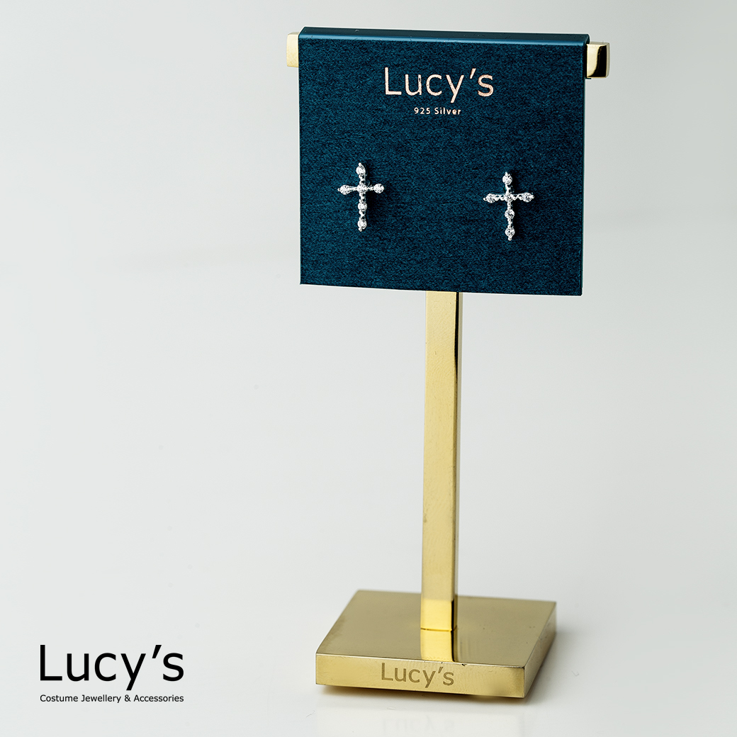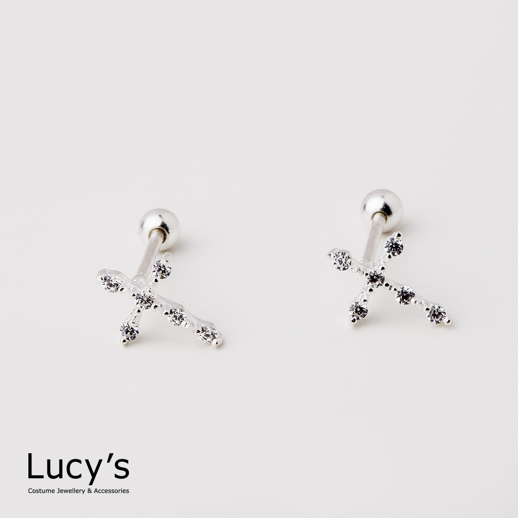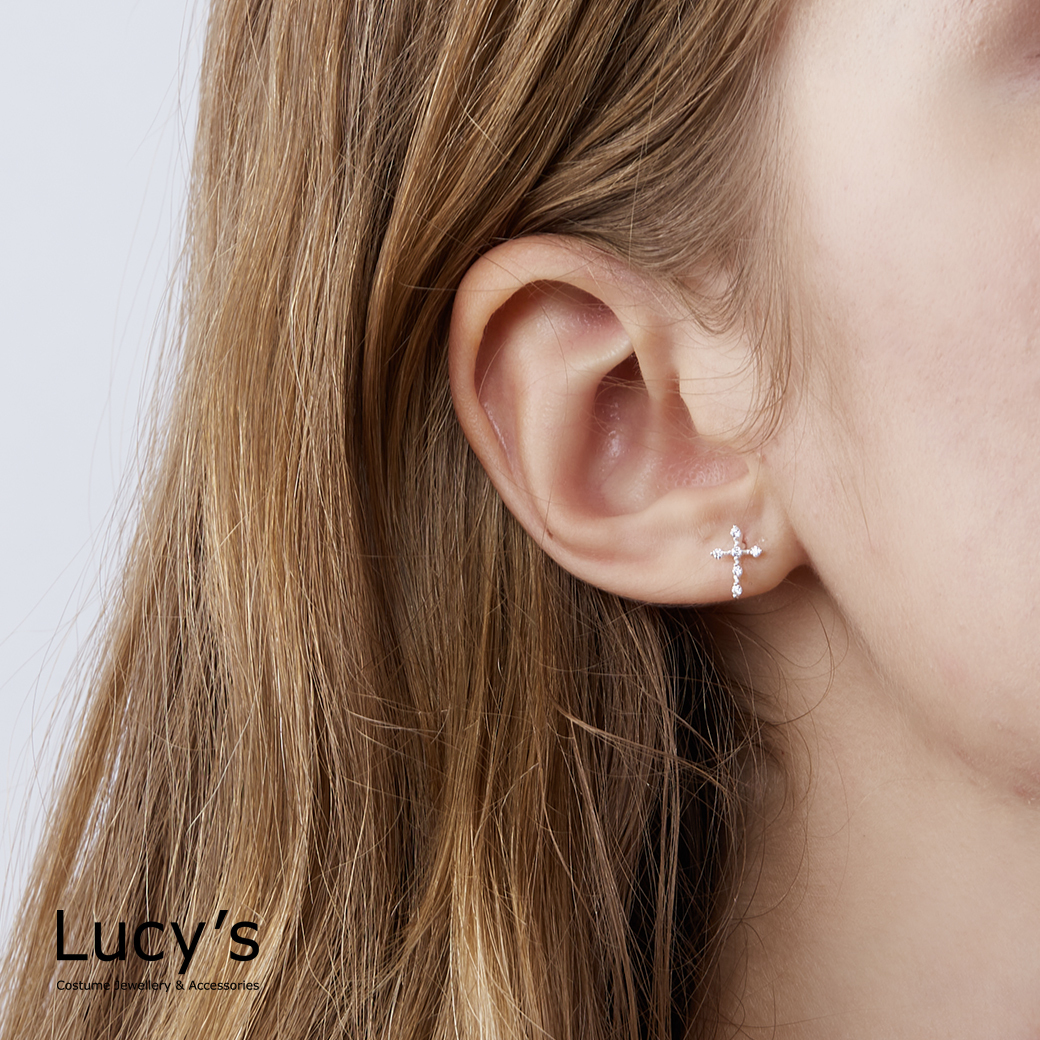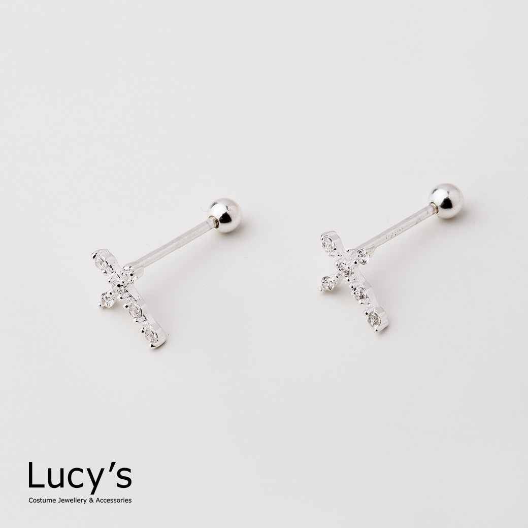 925純銀 璀璨十字架 轉珠耳環 (113068)